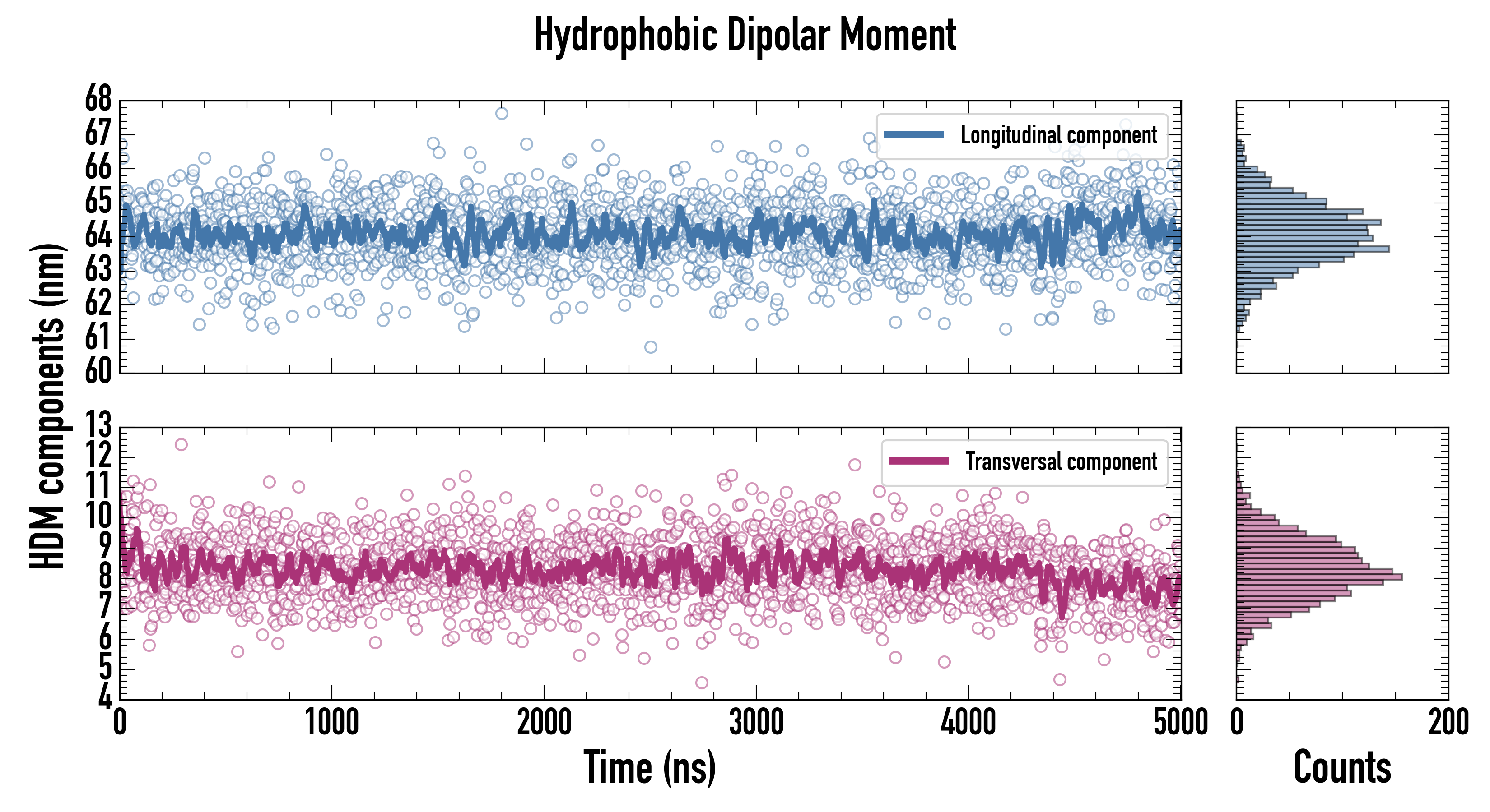 Longitudinal (e nm): 17.2 Transversal (e nm): 2.38 Hydrophobic Dipolar Moment (nm): 66.8