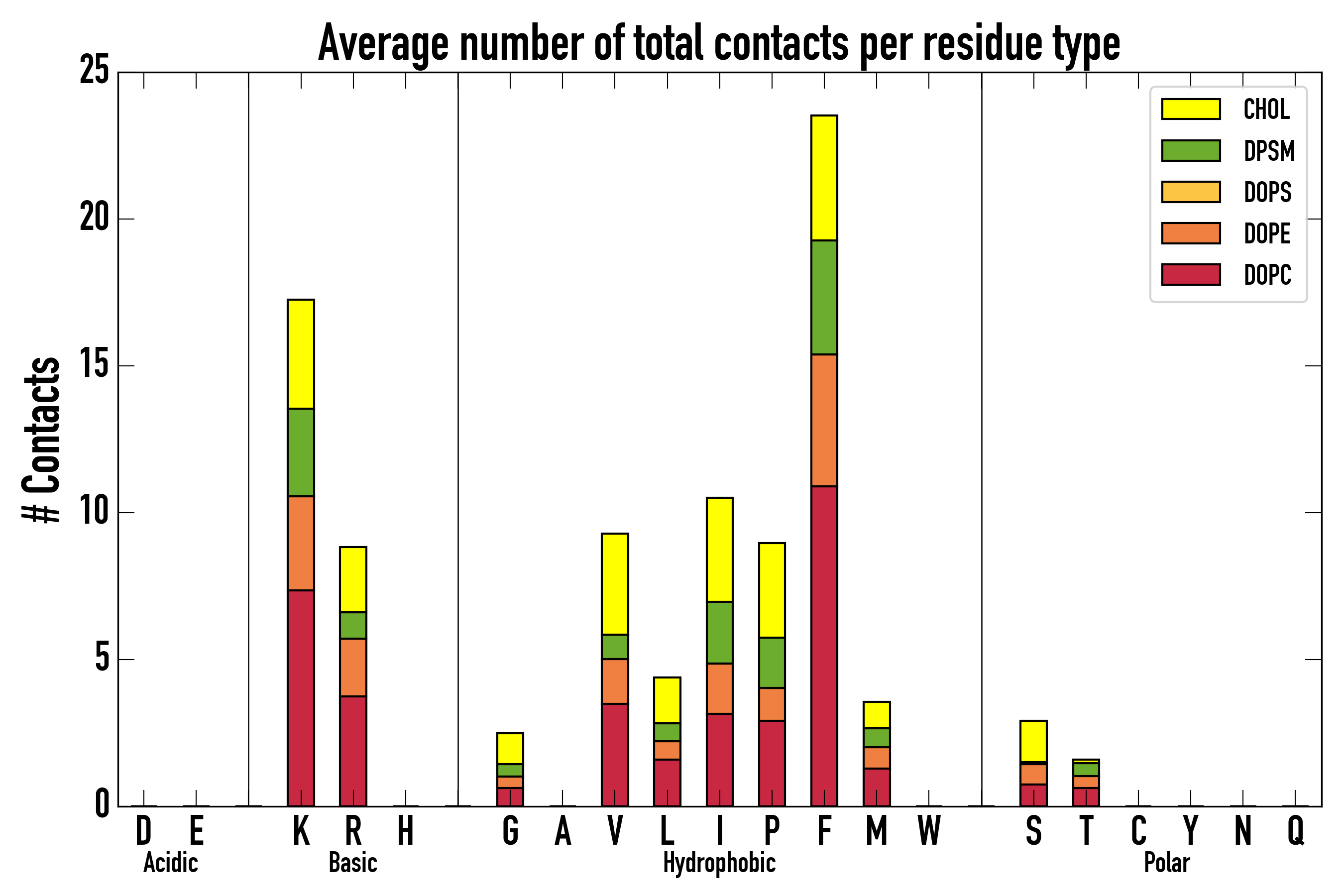 Number of total contacts per residue type: