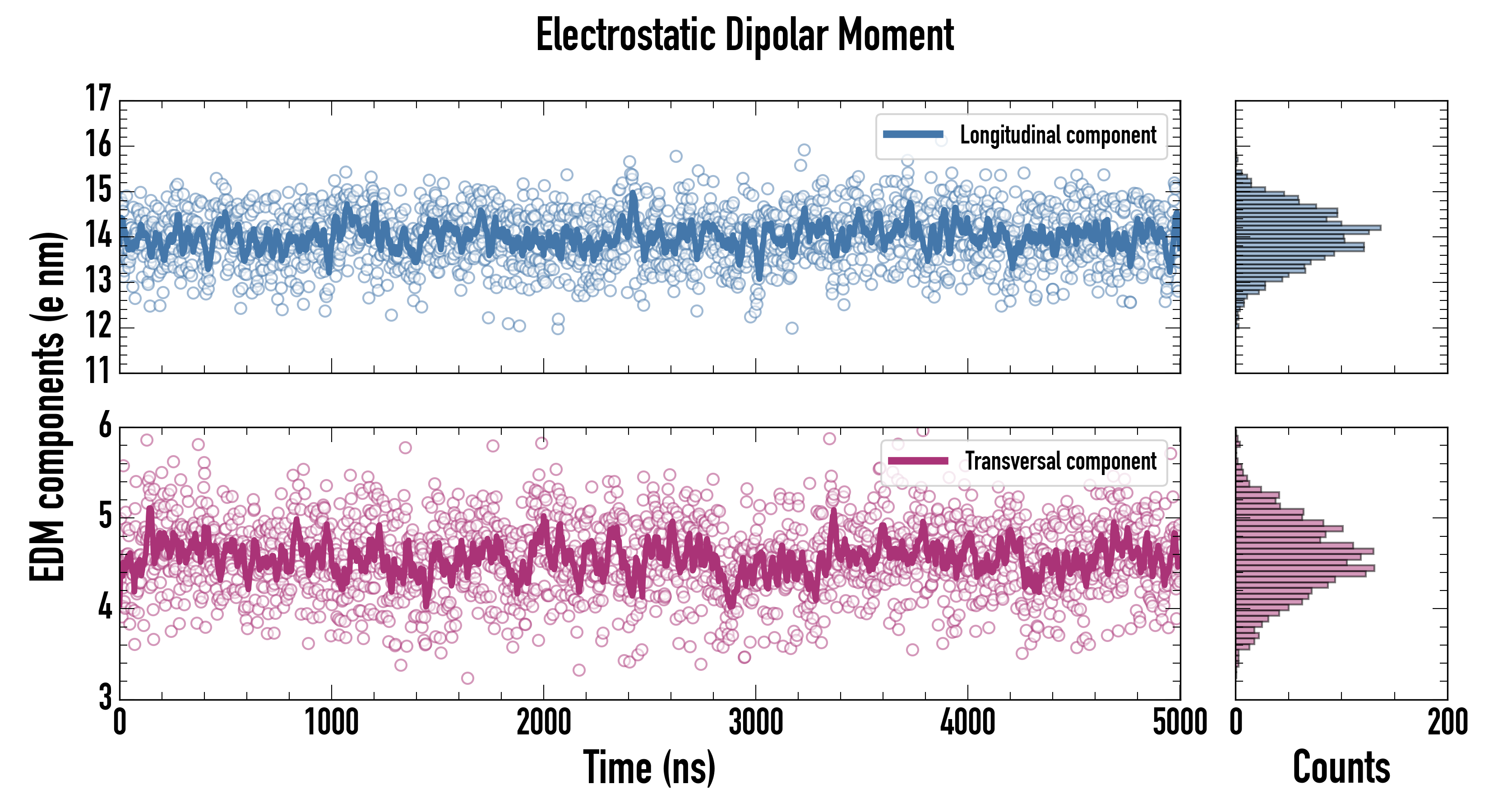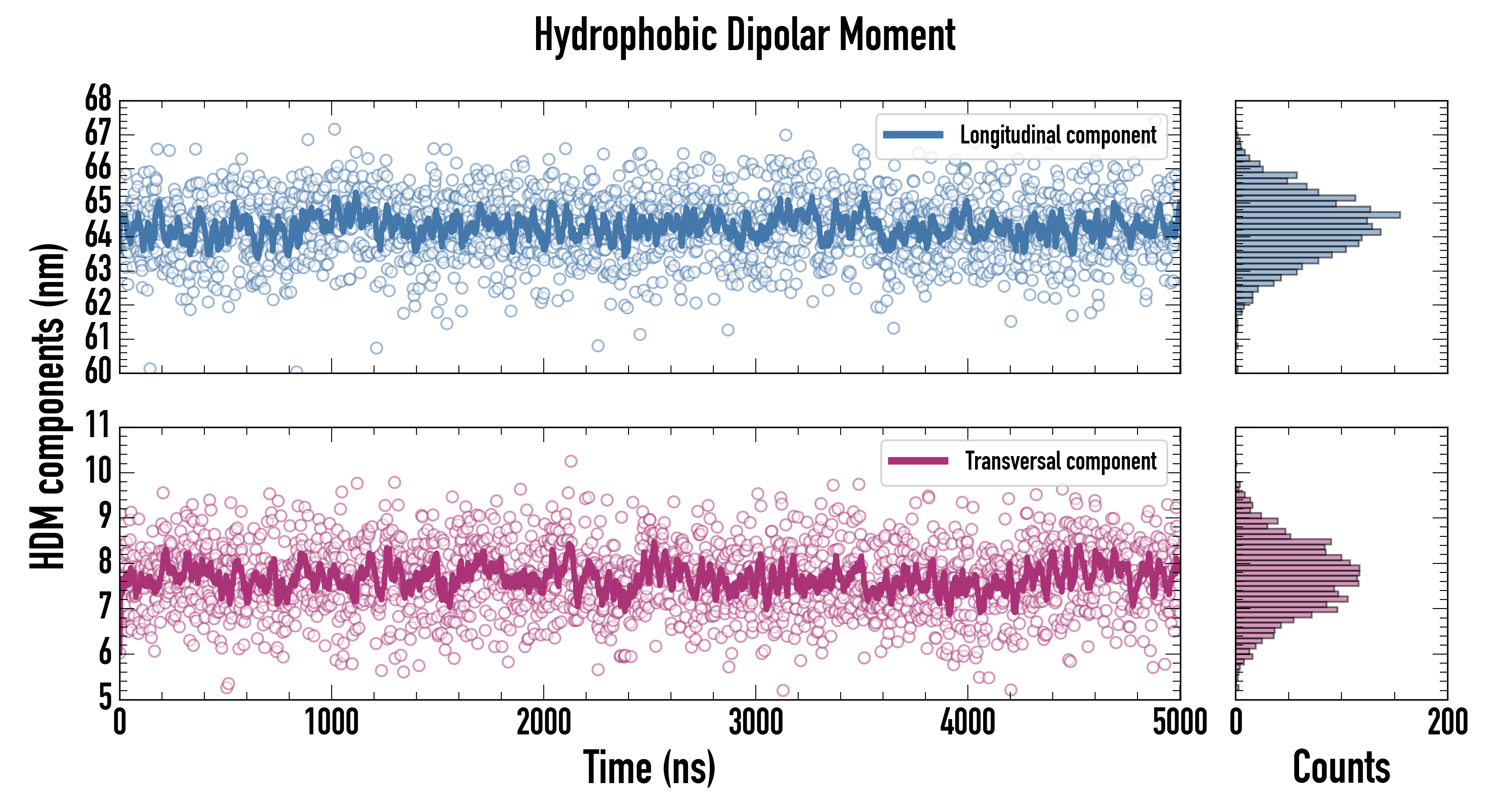 Longitudinal (e nm): 17.2 Transversal (e nm): 2.38 Hydrophobic Dipolar Moment (nm): 66.8