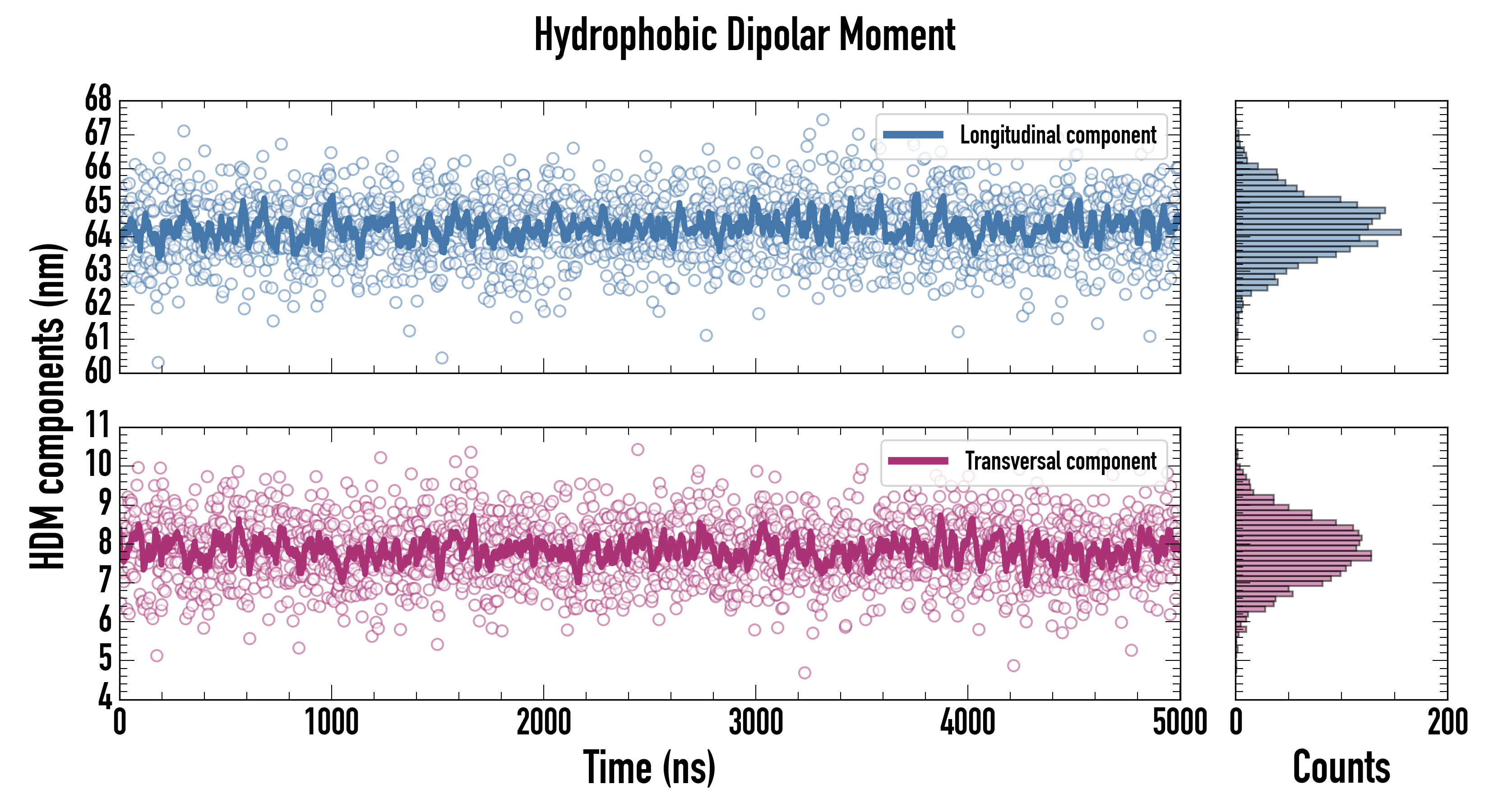 Longitudinal (e nm): 17.2 Transversal (e nm): 2.38 Hydrophobic Dipolar Moment (nm): 66.8