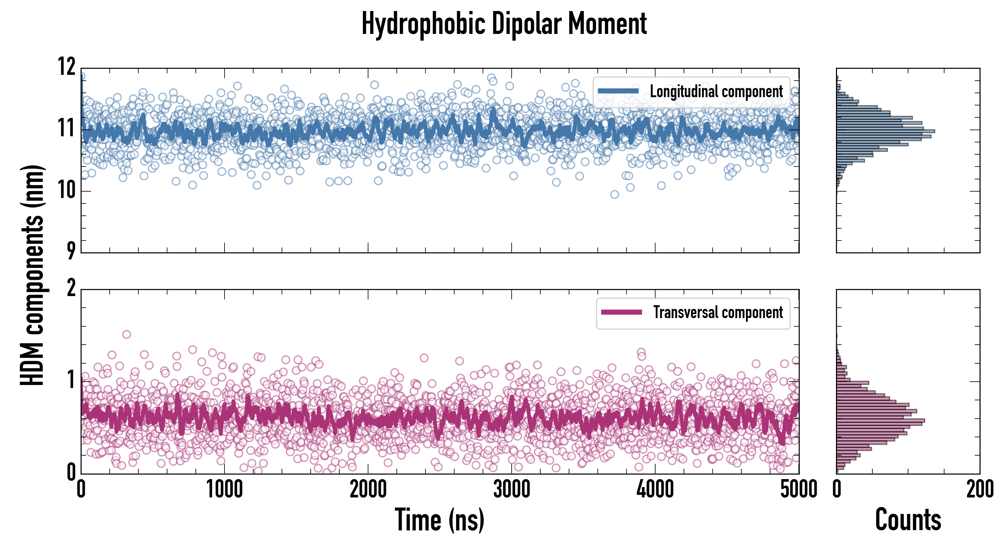 Longitudinal (e nm): 4.71 Transversal (e nm): 0.26 Hydrophobic Dipolar Moment (nm): 11.4