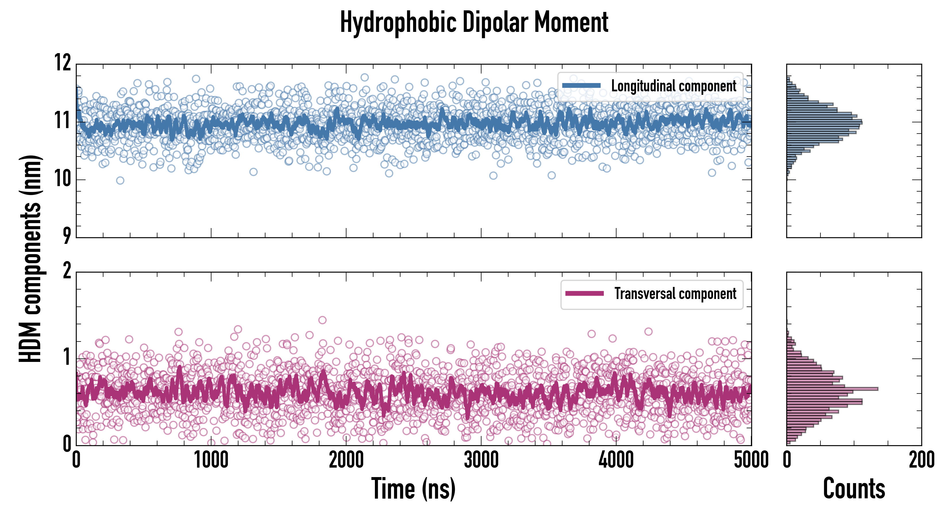 Longitudinal (e nm): 4.71 Transversal (e nm): 0.26 Hydrophobic Dipolar Moment (nm): 11.4