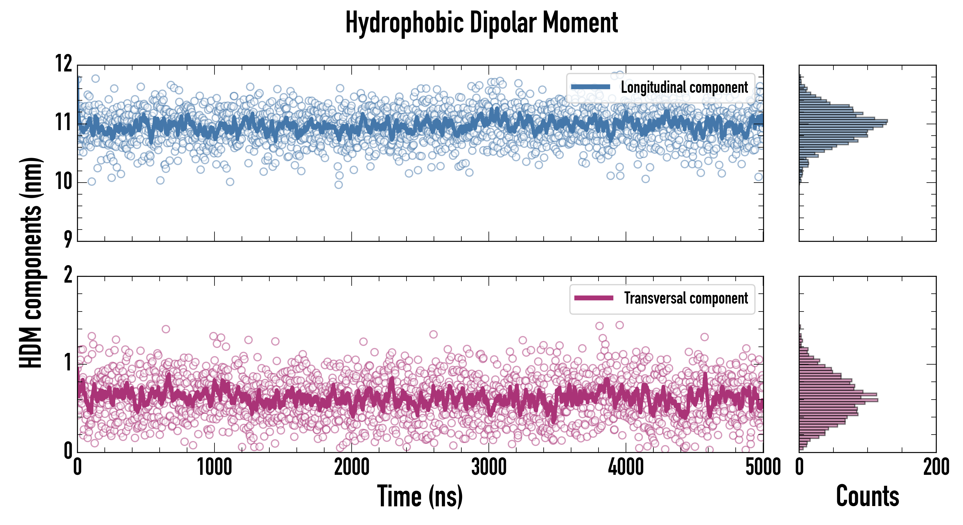 Longitudinal (e nm): 4.71 Transversal (e nm): 0.26 Hydrophobic Dipolar Moment (nm): 11.4