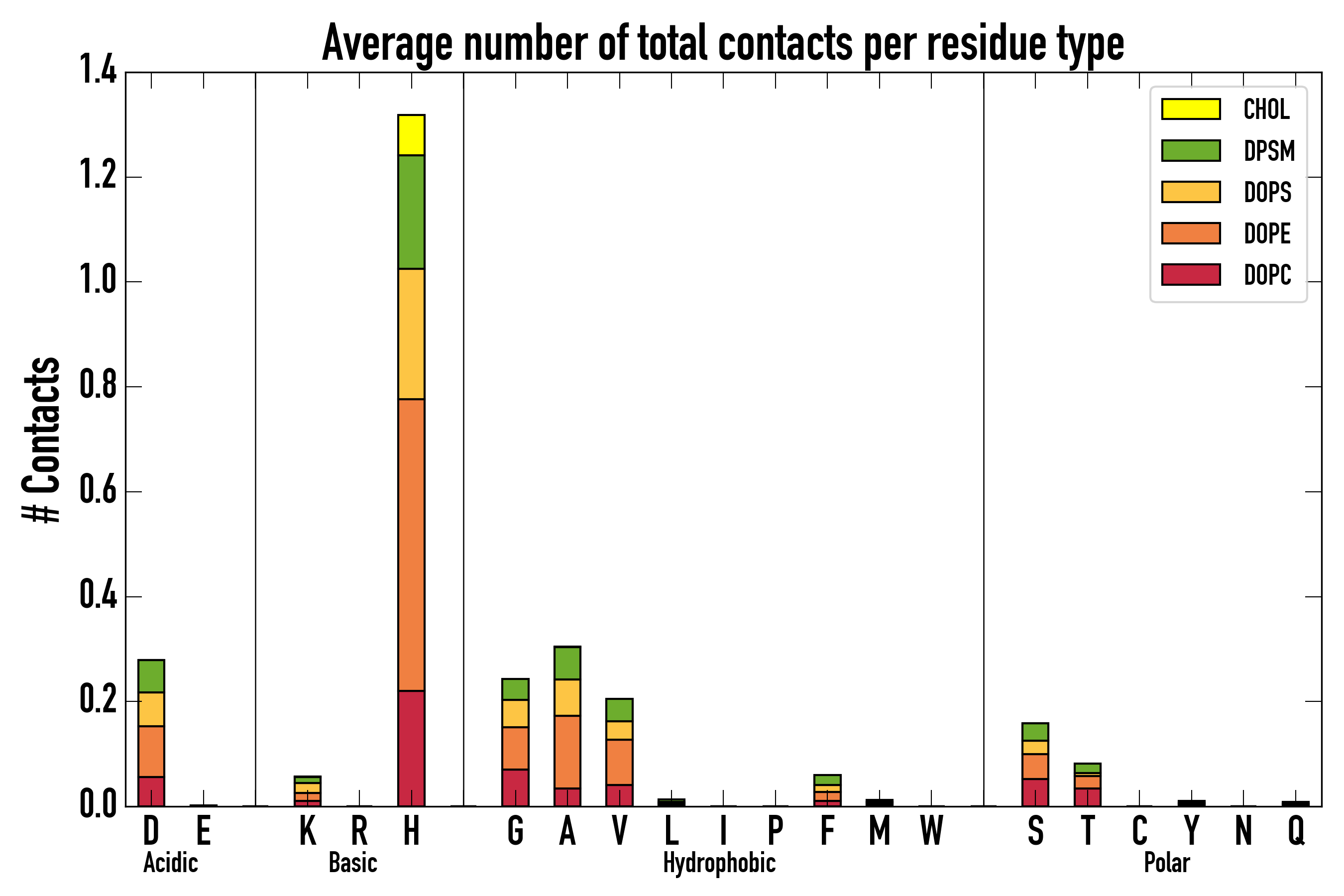 Number of total contacts per residue type: