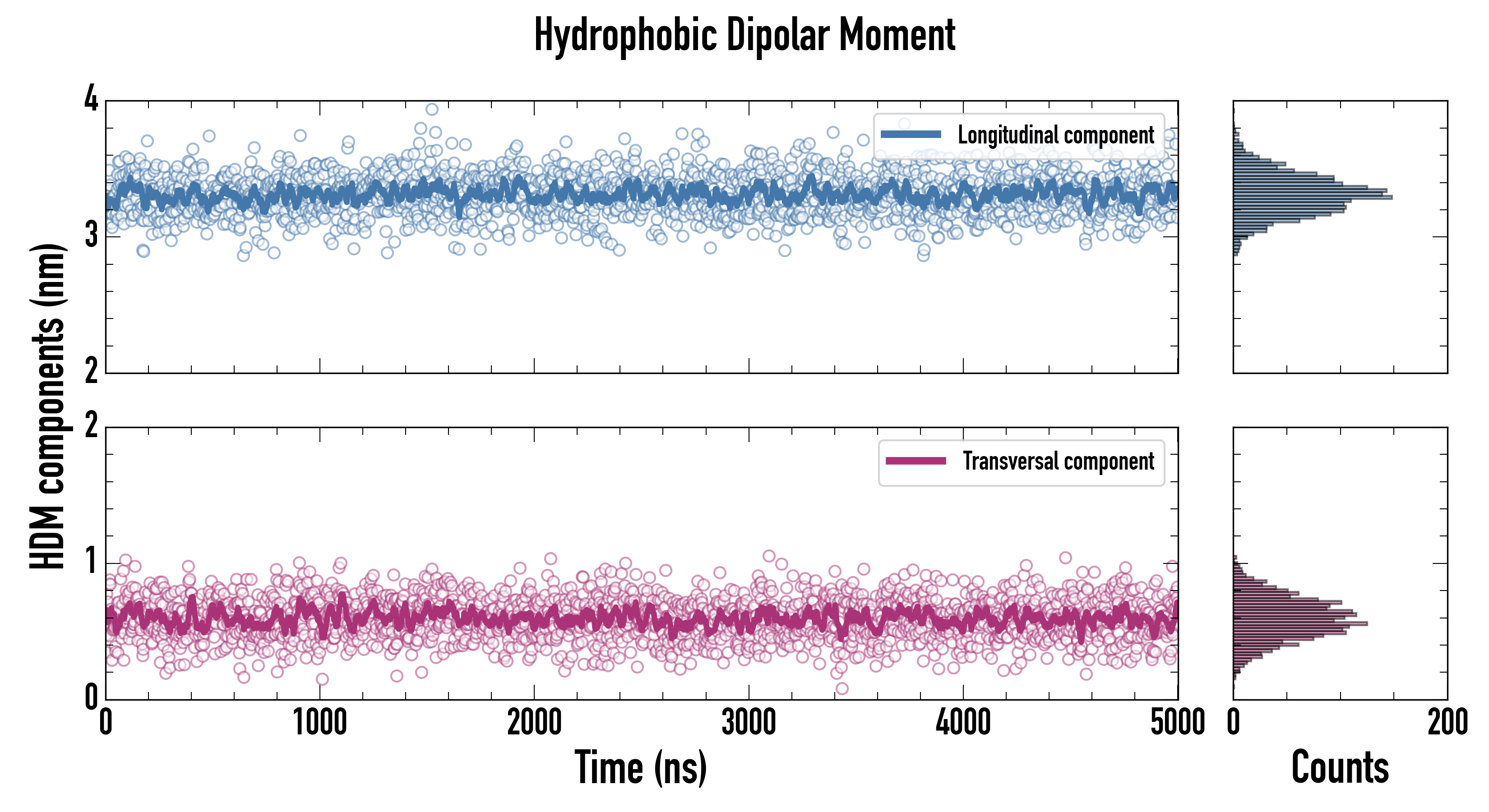 Longitudinal (e nm): 1.99 Transversal (e nm): 0.02 Hydrophobic Dipolar Moment (nm): 3.38