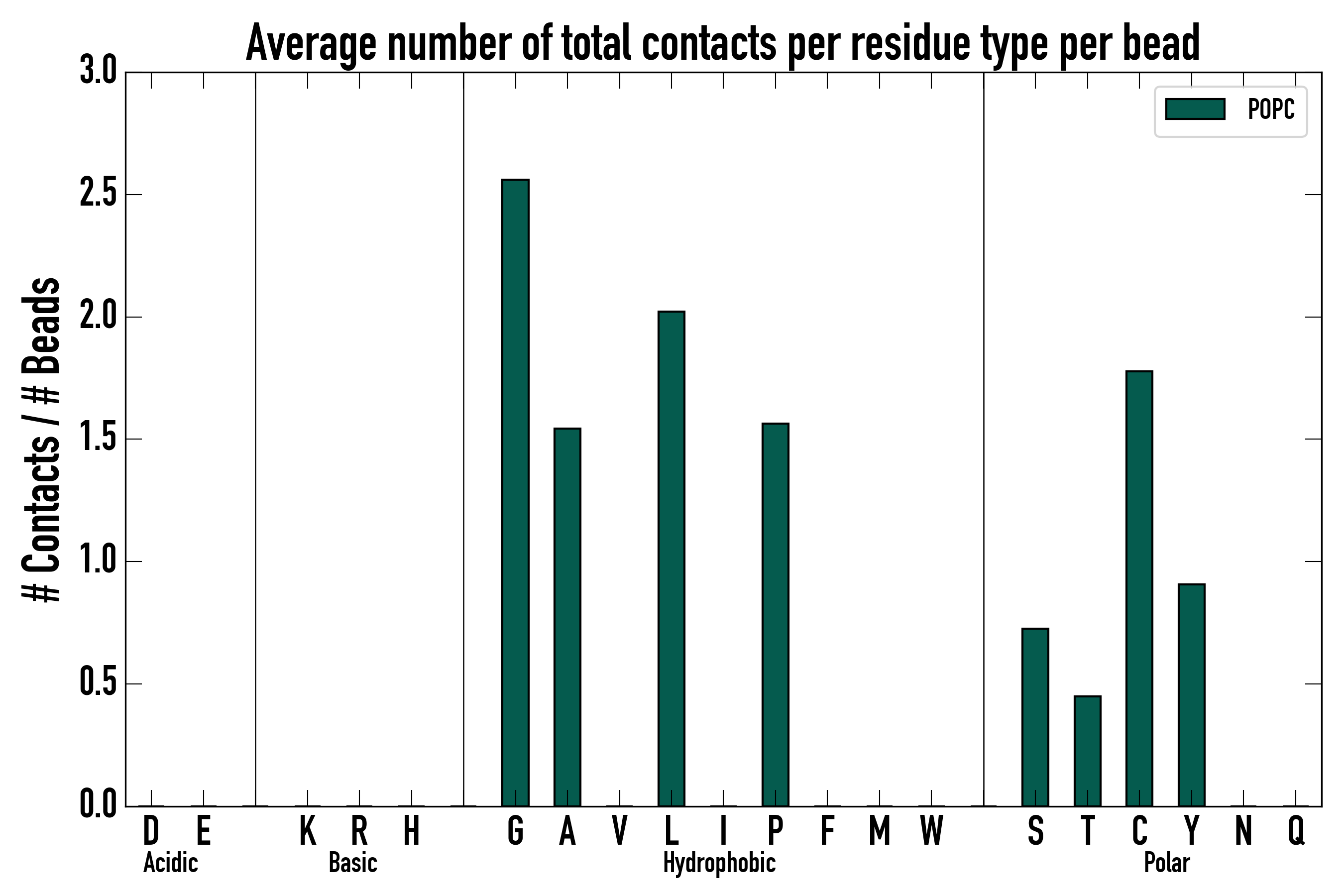 Number of total contacts per residue type: