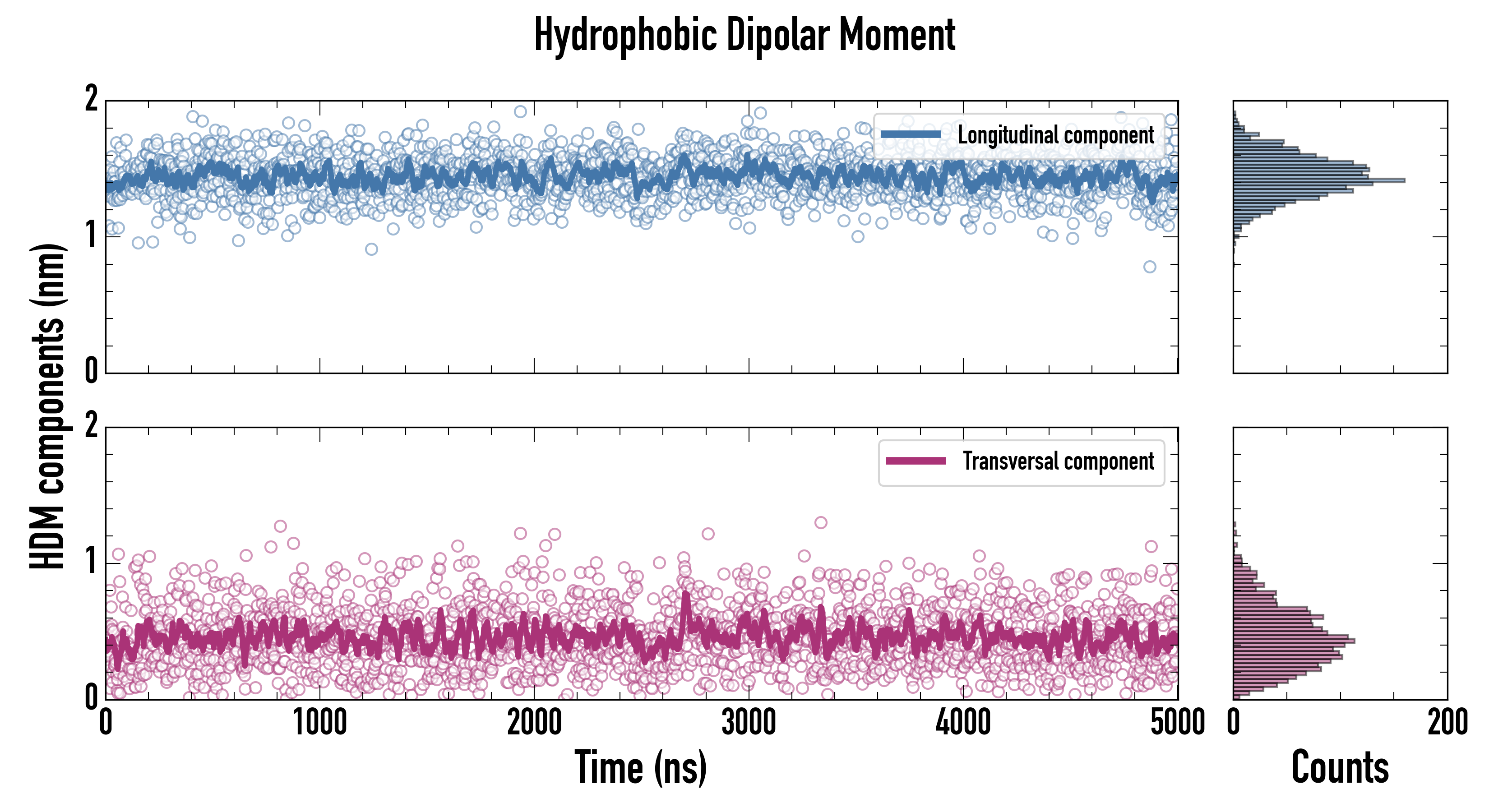 Longitudinal (e nm): 3.31 Transversal (e nm): 1.02 Hydrophobic Dipolar Moment (nm): 1.63