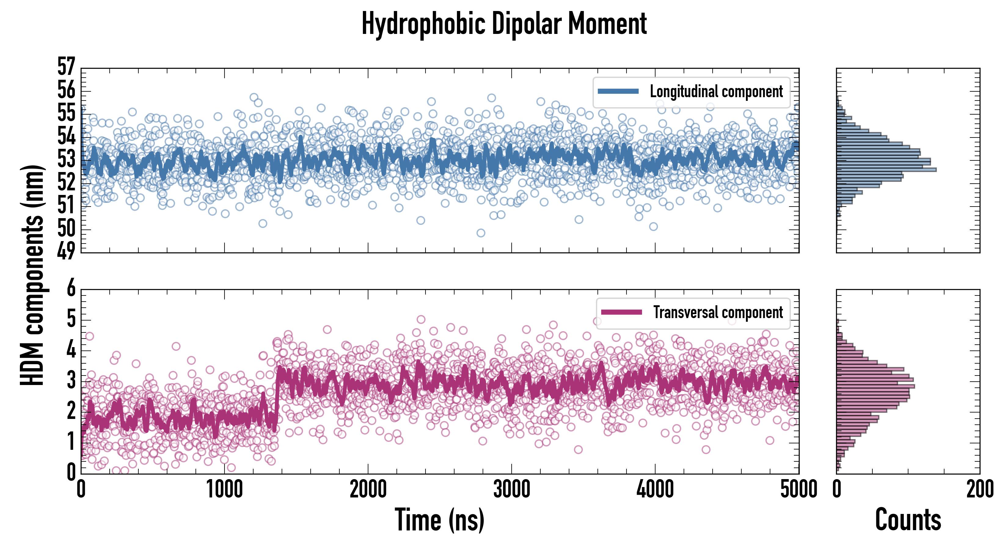 Longitudinal (e nm): 4.79 Transversal (e nm): 1.6 Hydrophobic Dipolar Moment (nm): 55.3