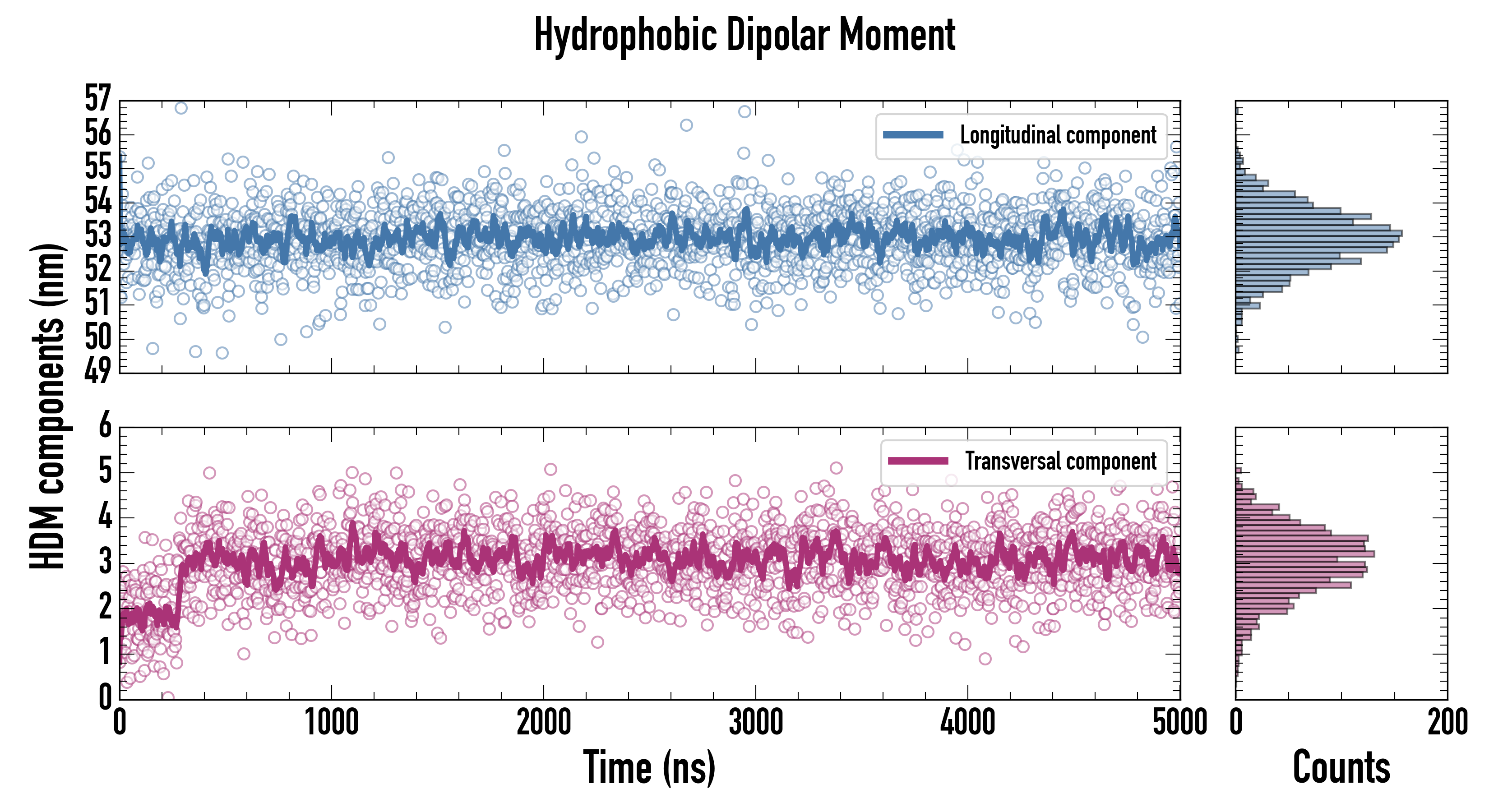 Longitudinal (e nm): 4.79 Transversal (e nm): 1.6 Hydrophobic Dipolar Moment (nm): 55.3