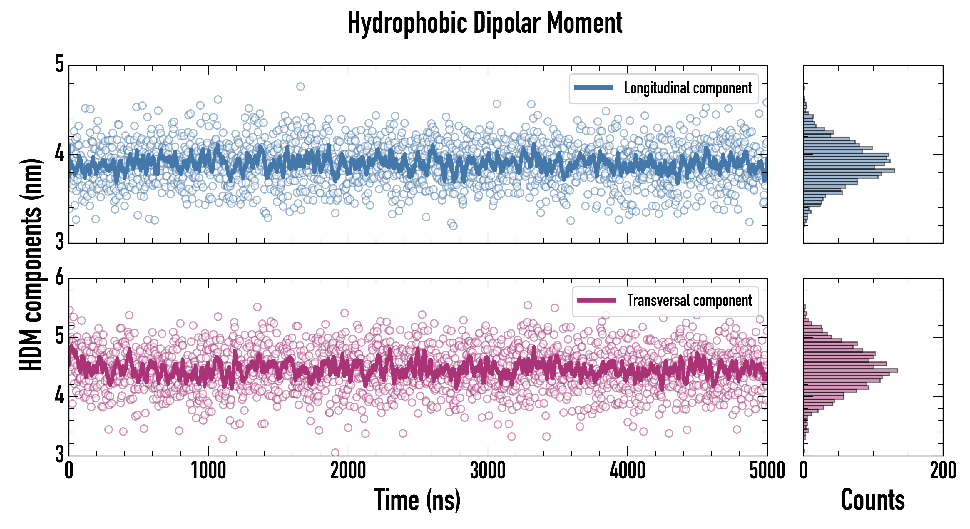 Longitudinal (e nm): 5.04 Transversal (e nm): 1.14 Hydrophobic Dipolar Moment (nm): 6.23