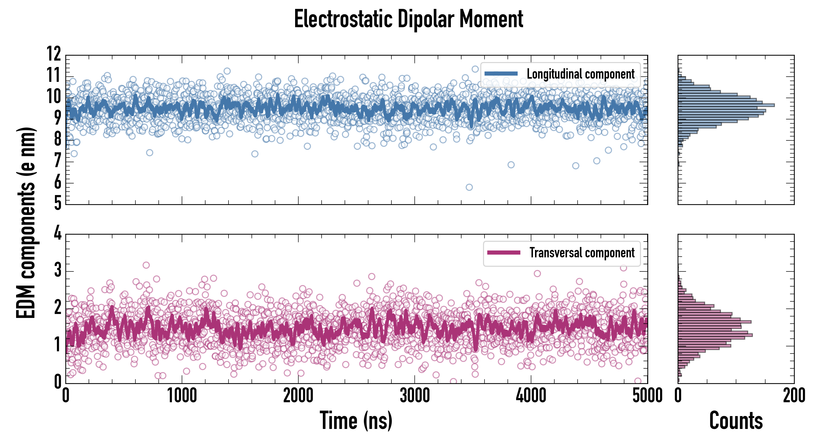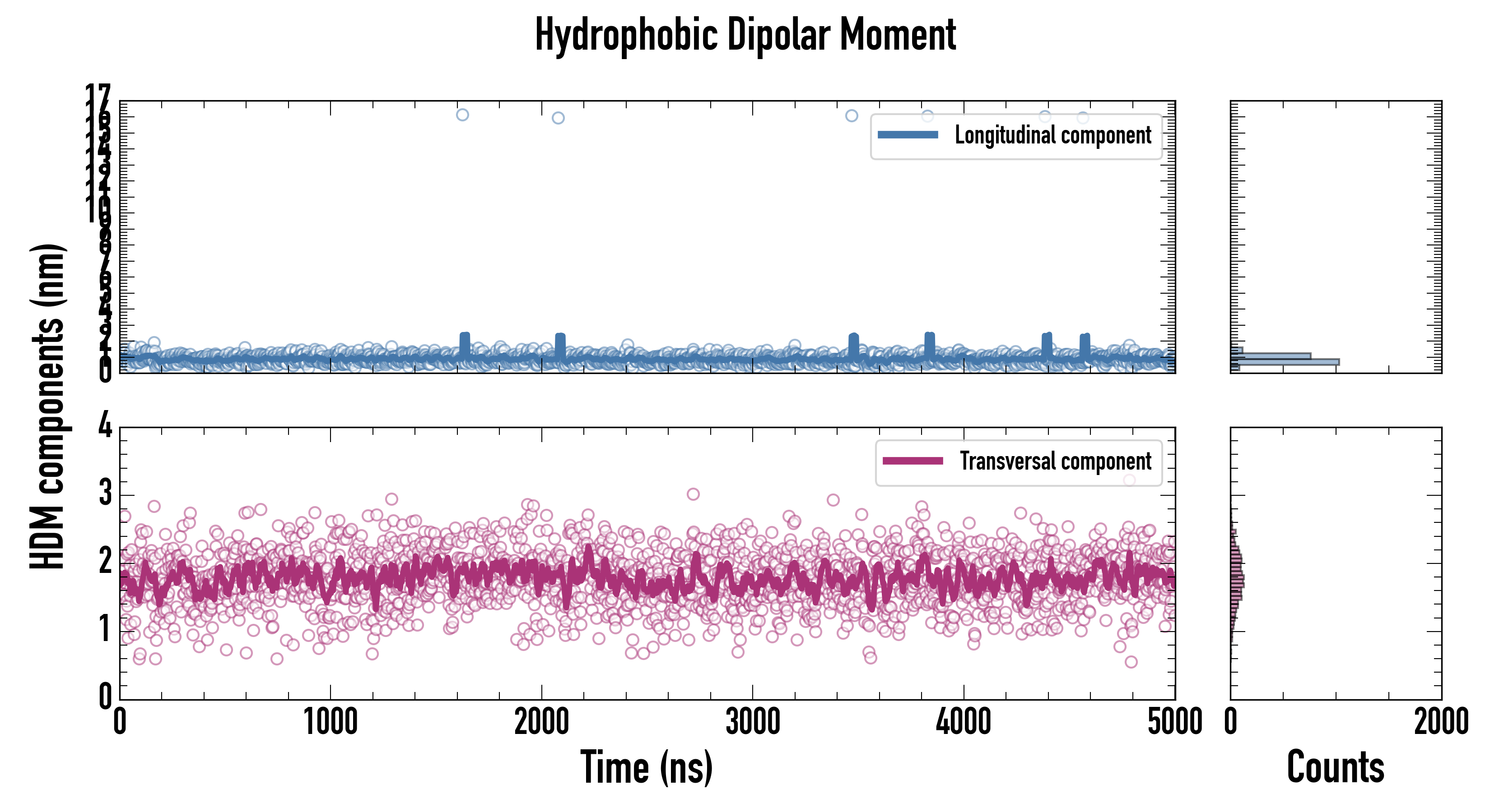 Longitudinal (e nm): 12.3 Transversal (e nm): 1.85 Hydrophobic Dipolar Moment (nm): 2.38