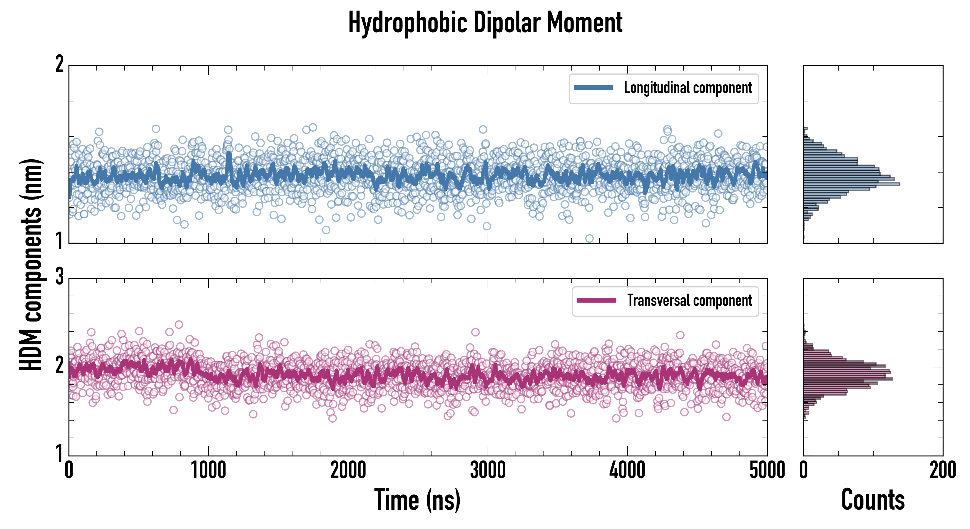 Longitudinal (e nm): 6.94 Transversal (e nm): 2.31 Hydrophobic Dipolar Moment (nm): 2.12