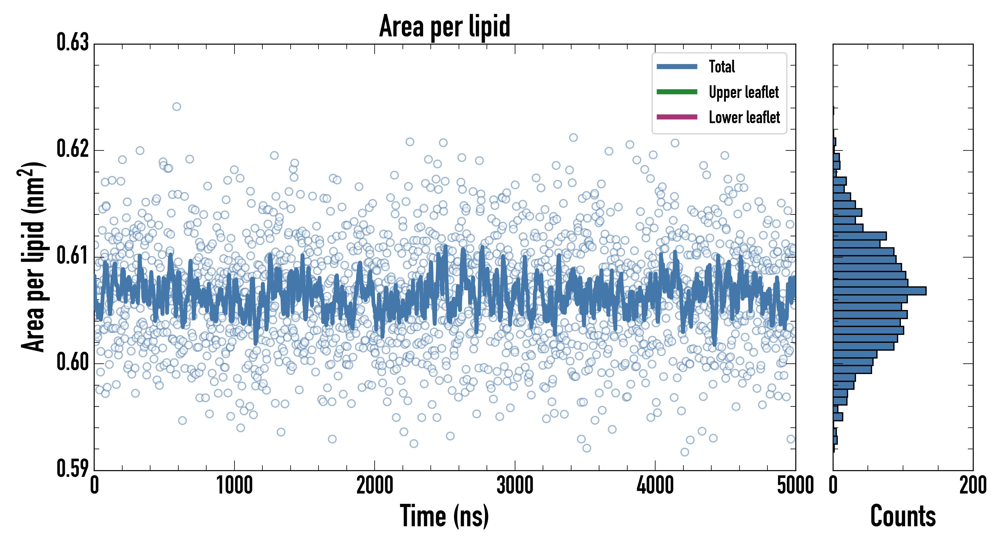 Upper leaflet (nm2): 0.606591000 ± 0.000858994