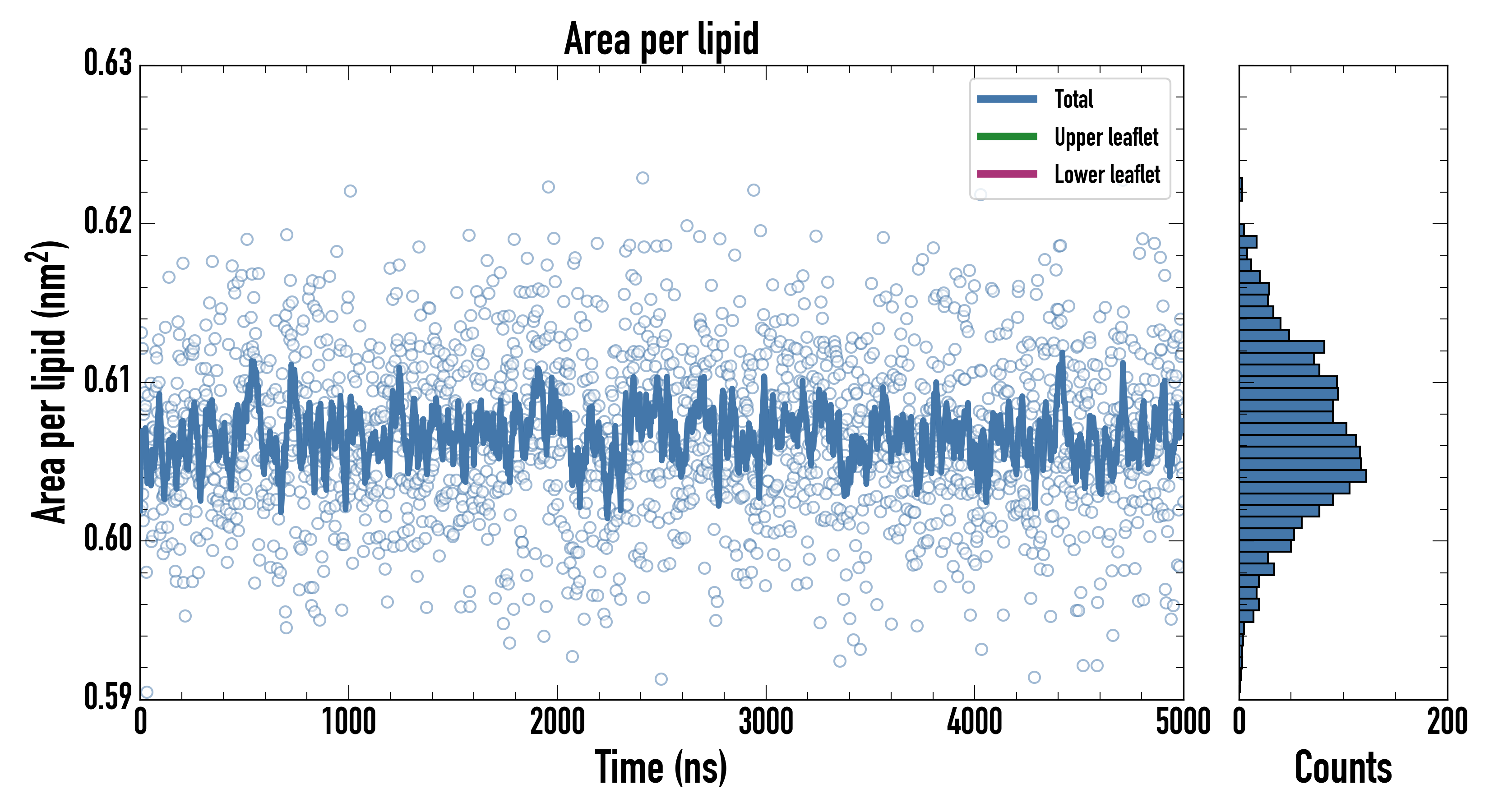 Upper leaflet (nm2): 0.606408000 ± 0.000876762