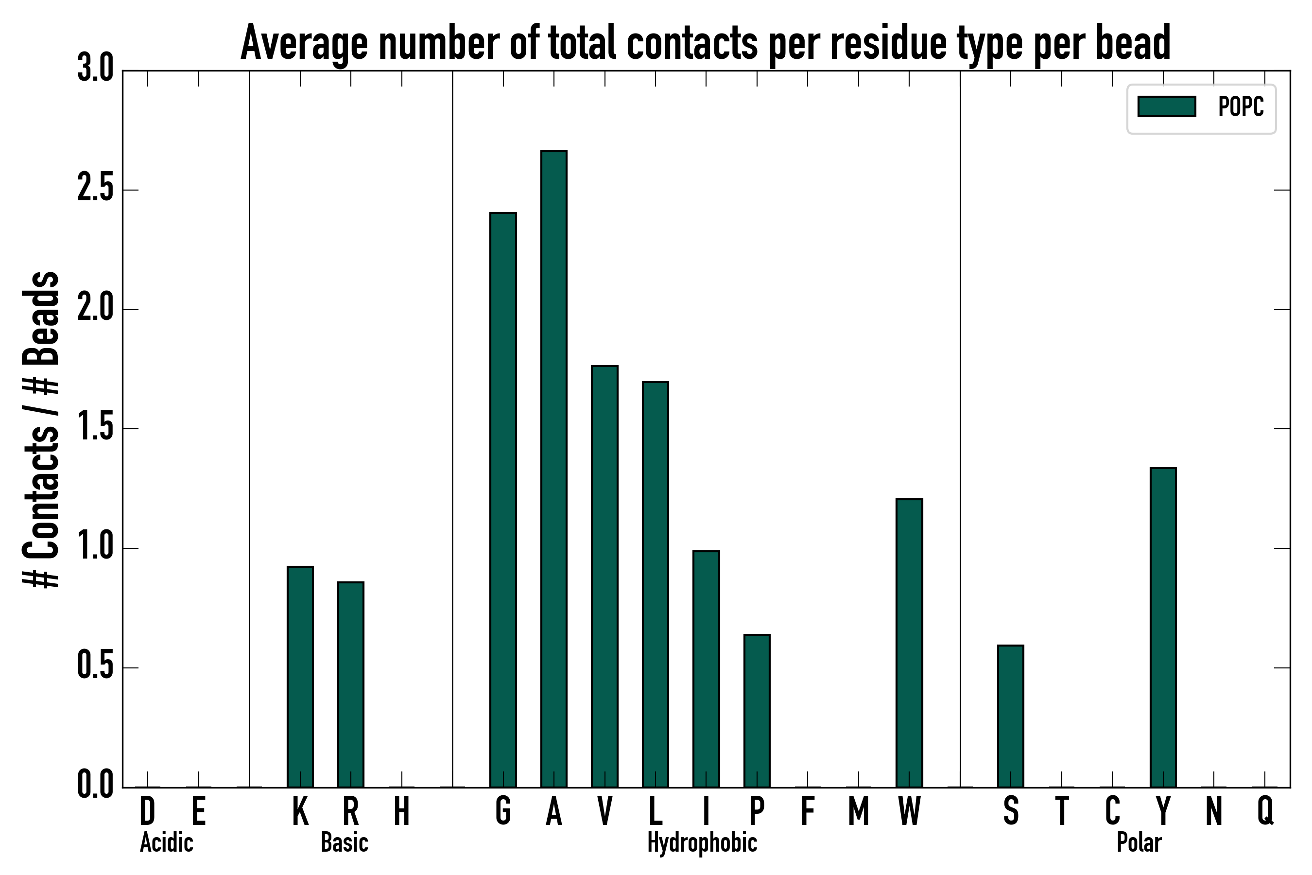 Number of total contacts per residue type: