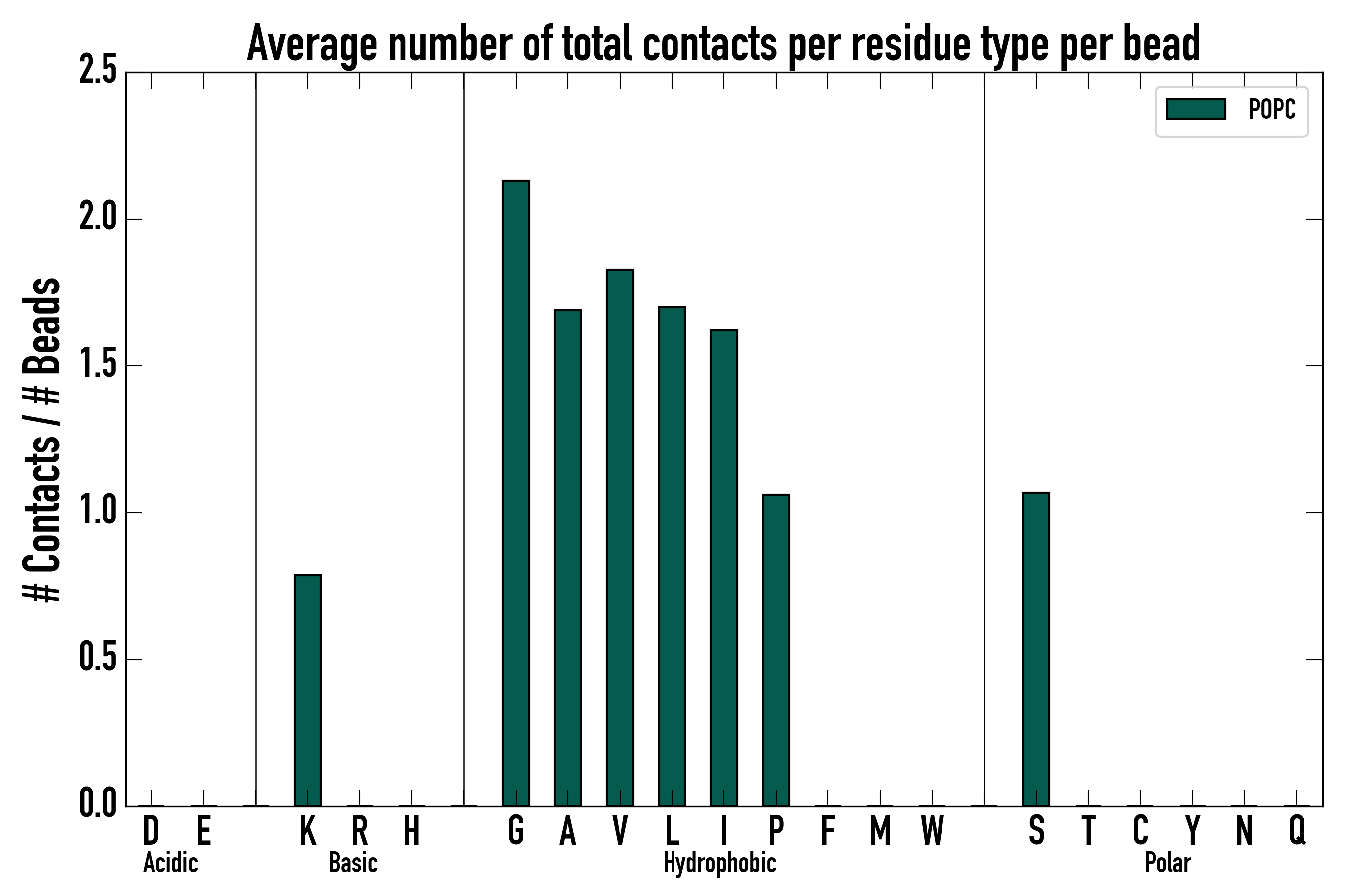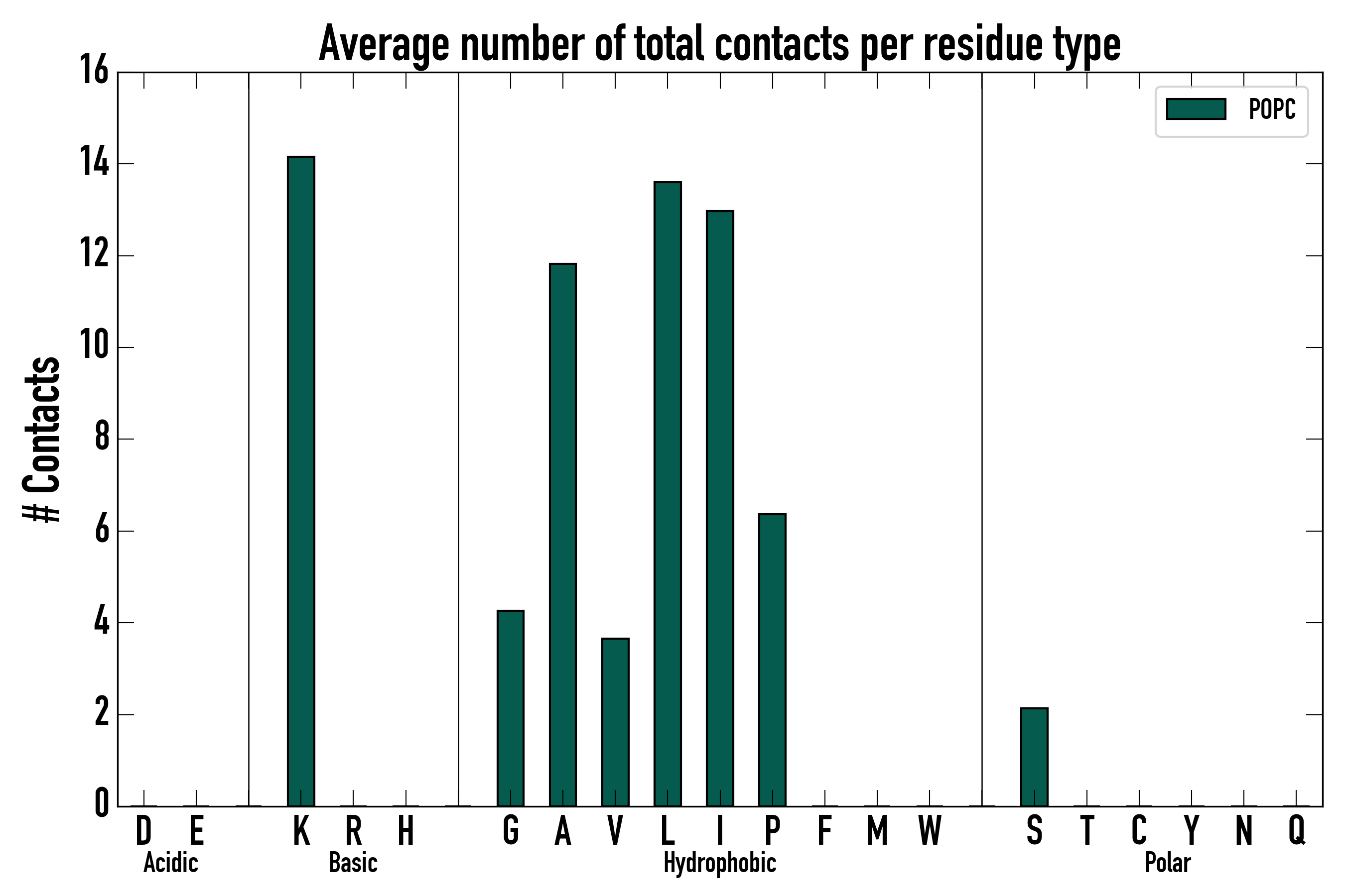 Number of total contacts per residue type: