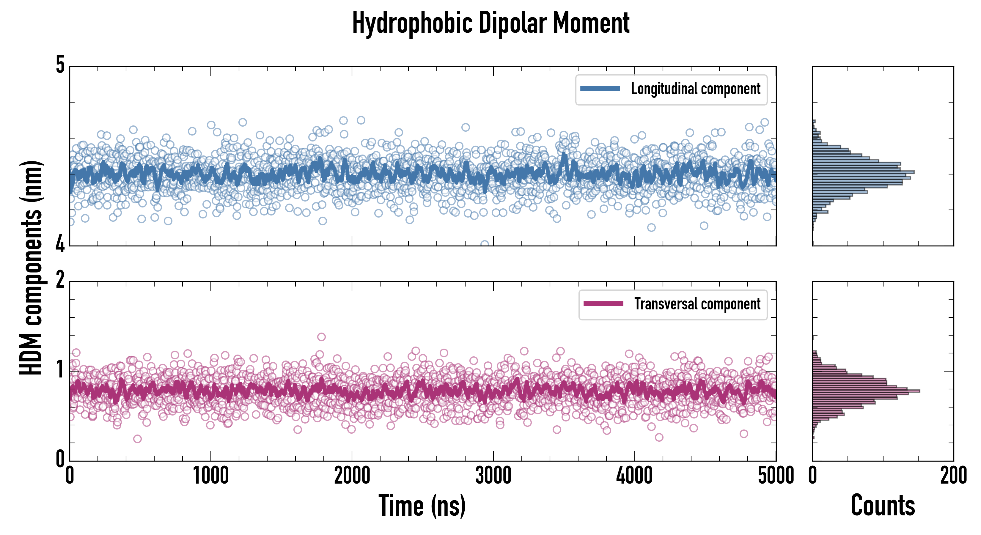 Longitudinal (e nm): 0.52 Transversal (e nm): 0.53 Hydrophobic Dipolar Moment (nm): 4.72