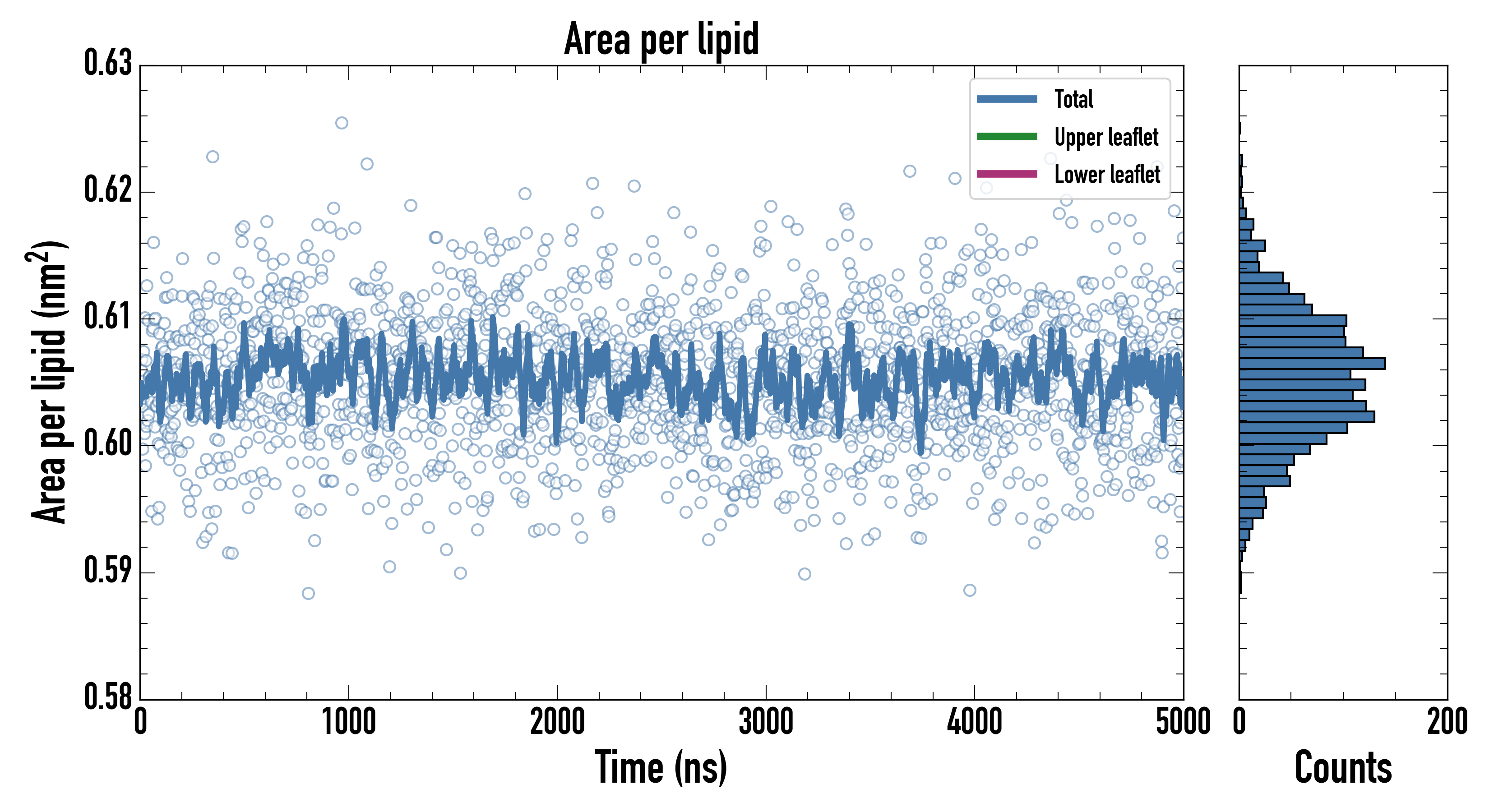 Upper leaflet (nm2): 0.605434000 ± 0.000915825
