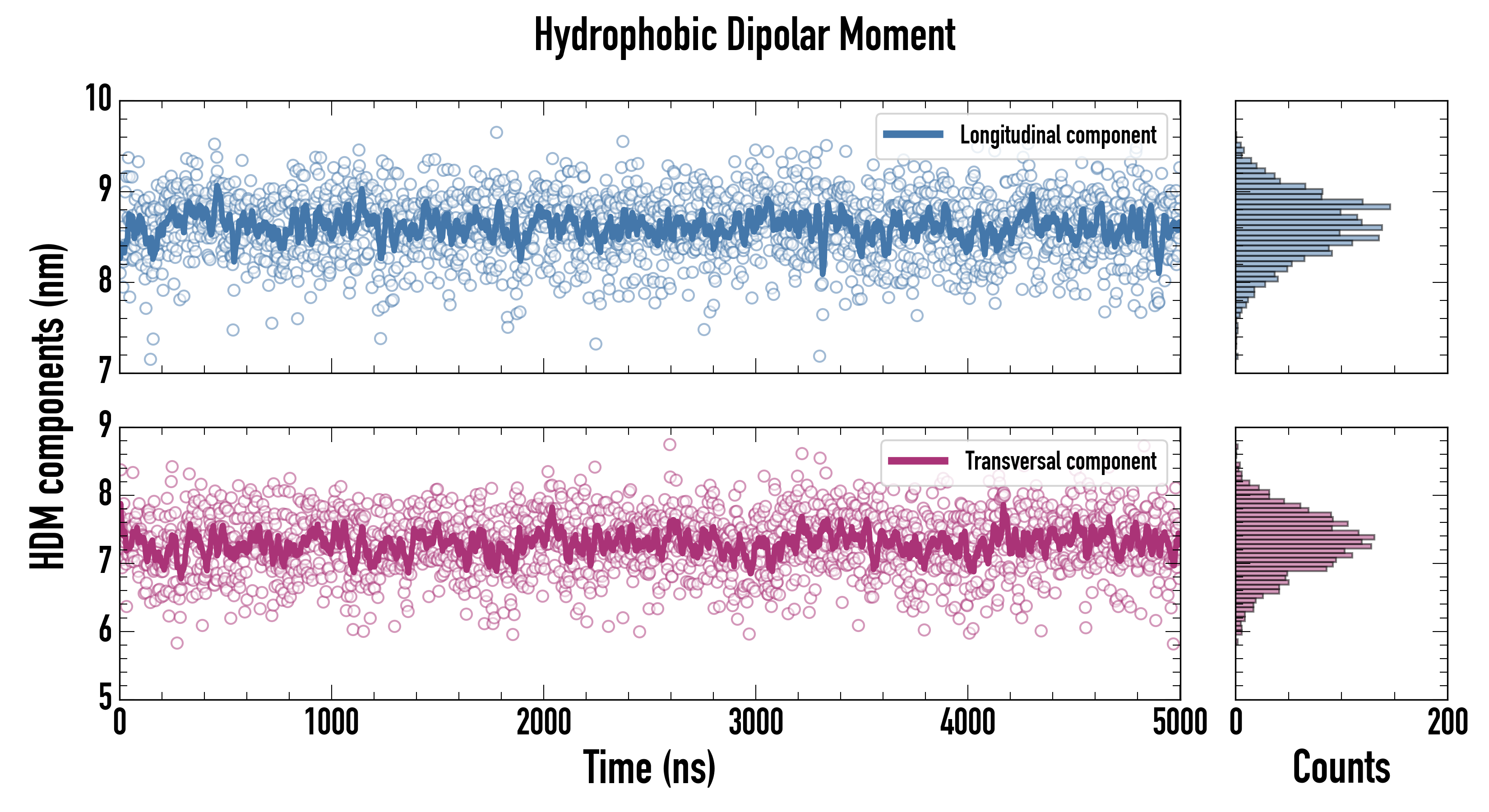 Longitudinal (e nm): 5.96 Transversal (e nm): 1.15 Hydrophobic Dipolar Moment (nm): 10.1