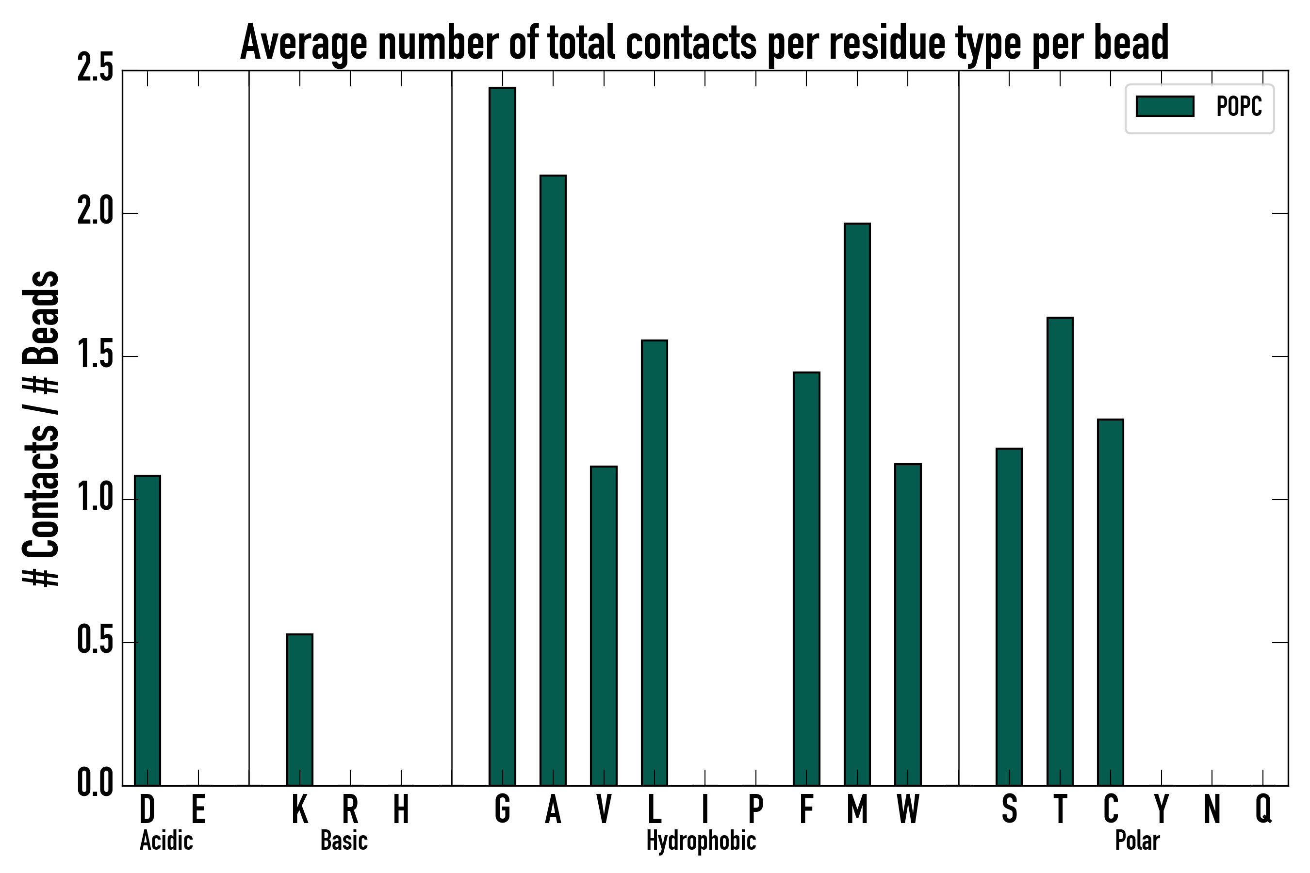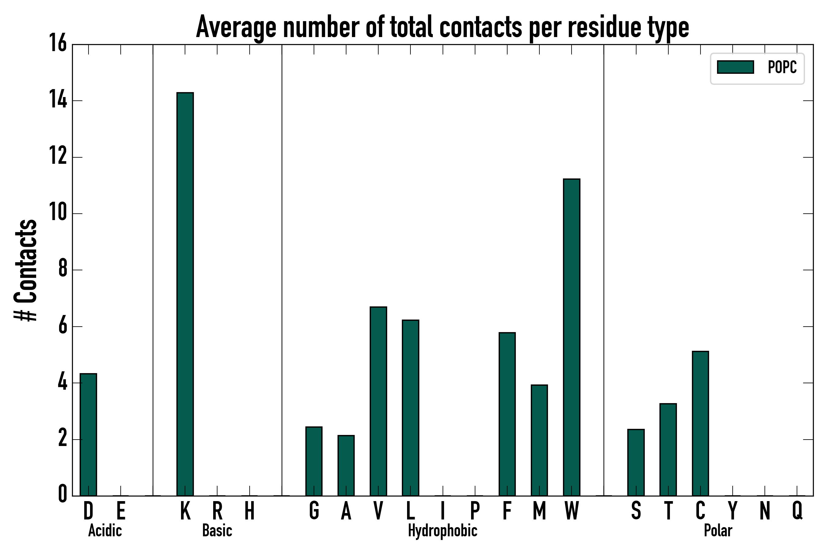 Number of total contacts per residue type: