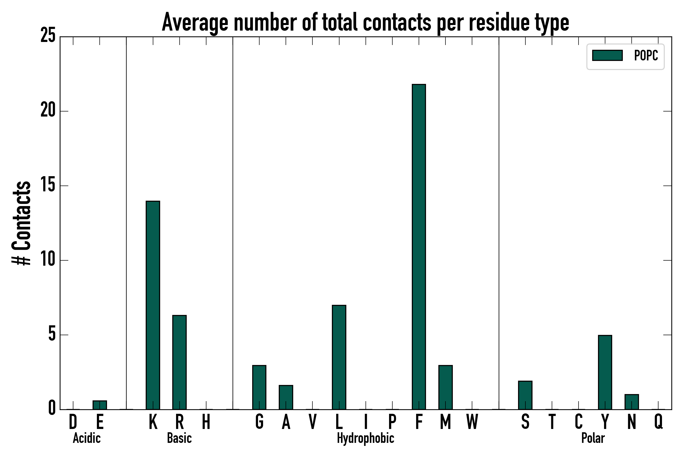 Number of total contacts per residue type: