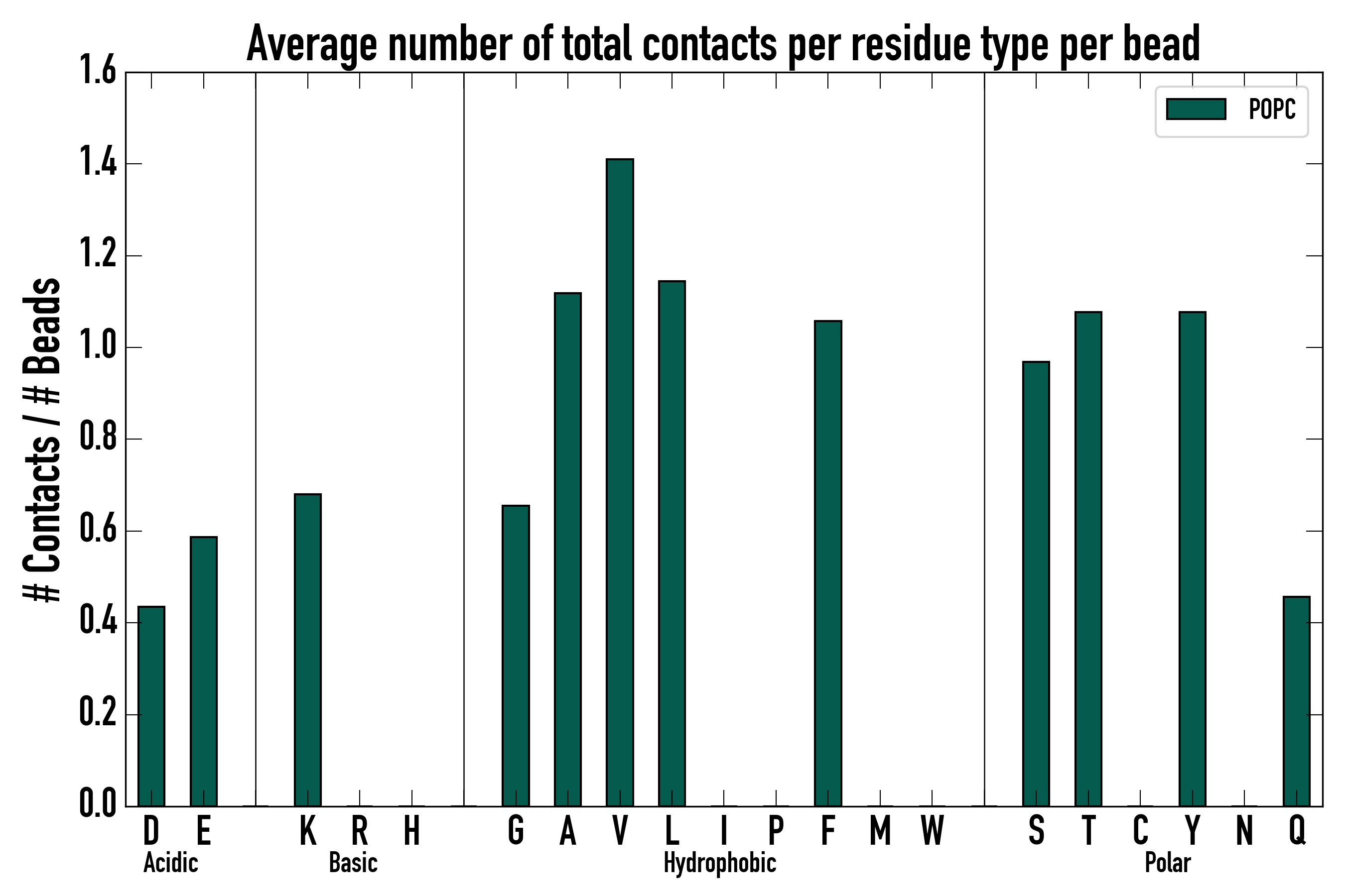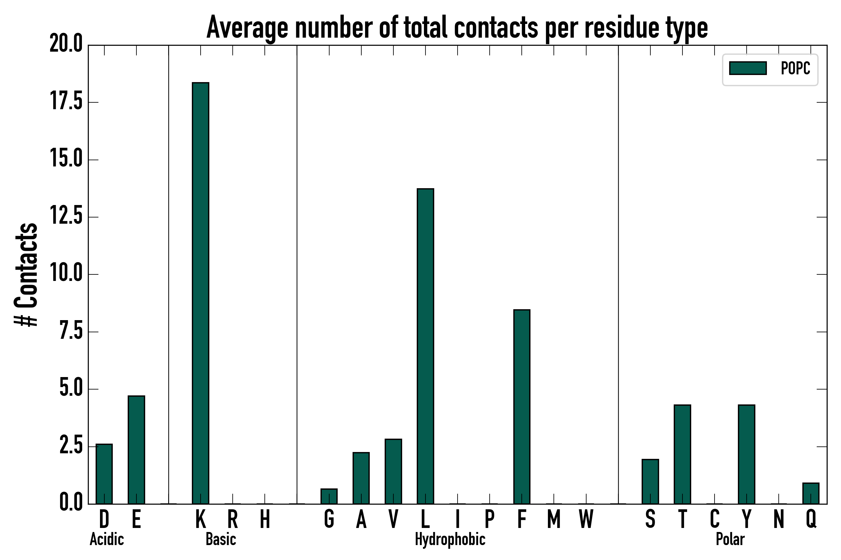 Number of total contacts per residue type: