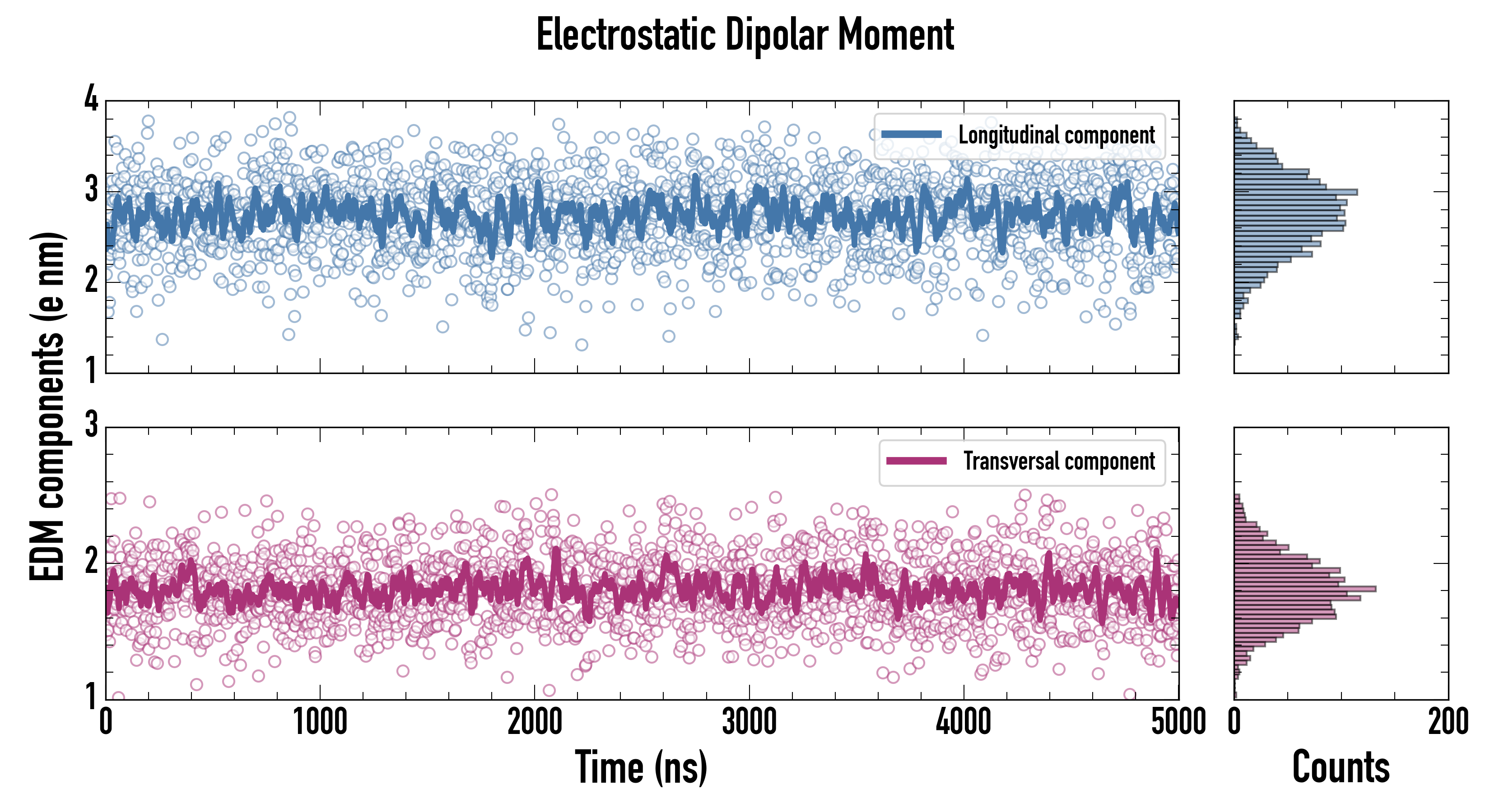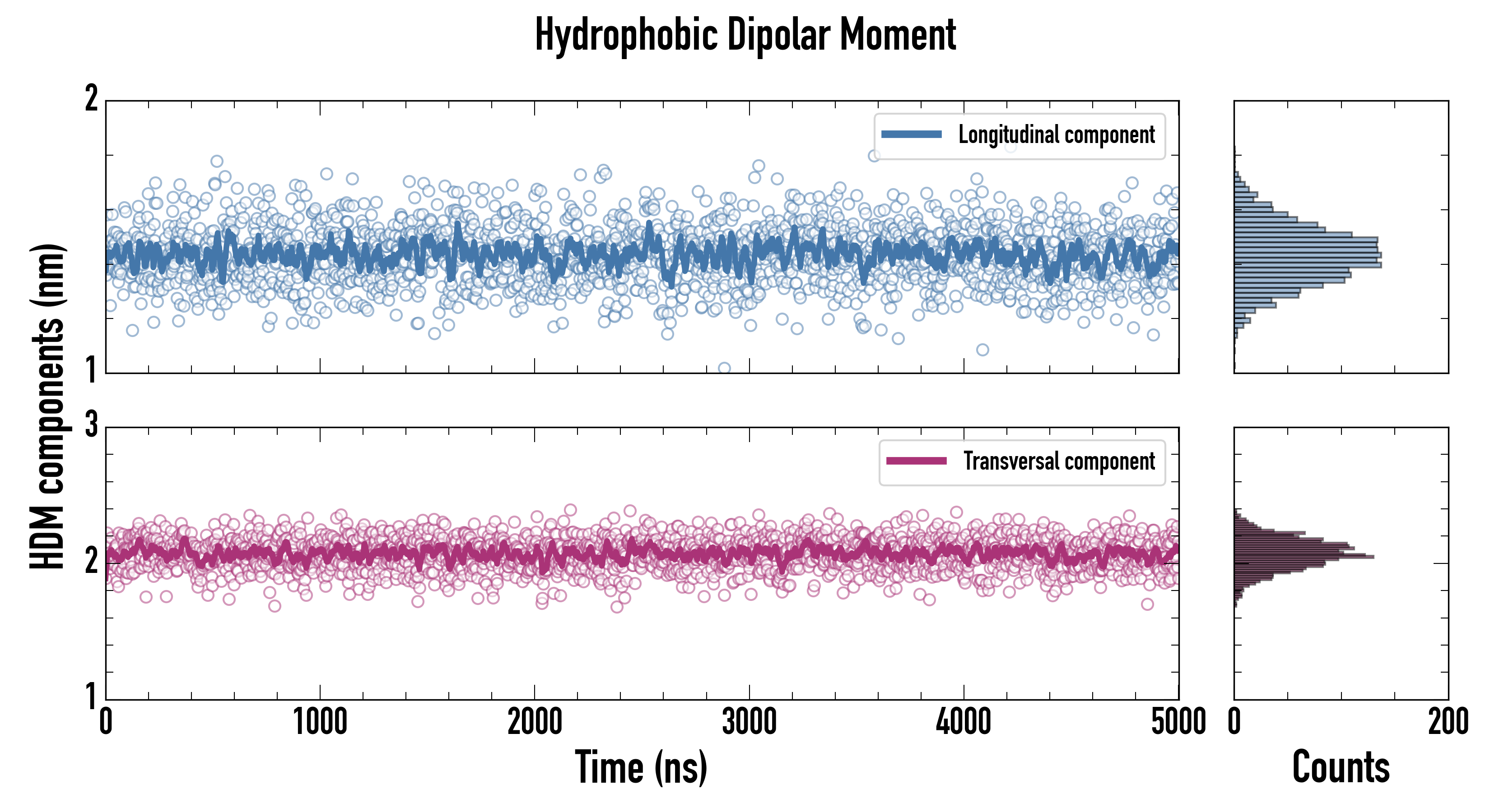 Longitudinal (e nm): 3.6 Transversal (e nm): 0.98 Hydrophobic Dipolar Moment (nm): 1.67