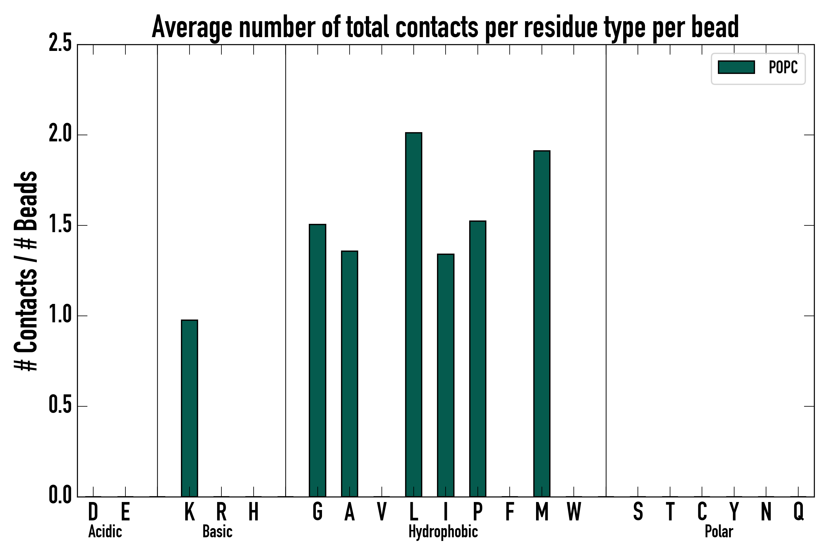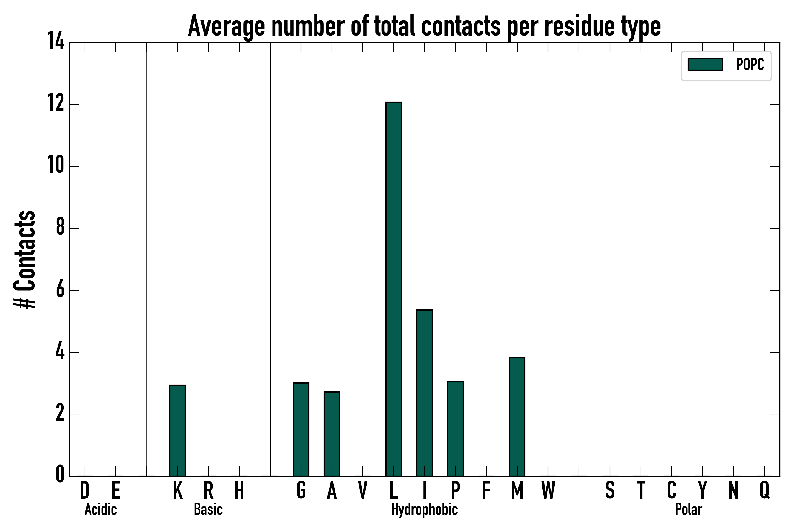 Number of total contacts per residue type: