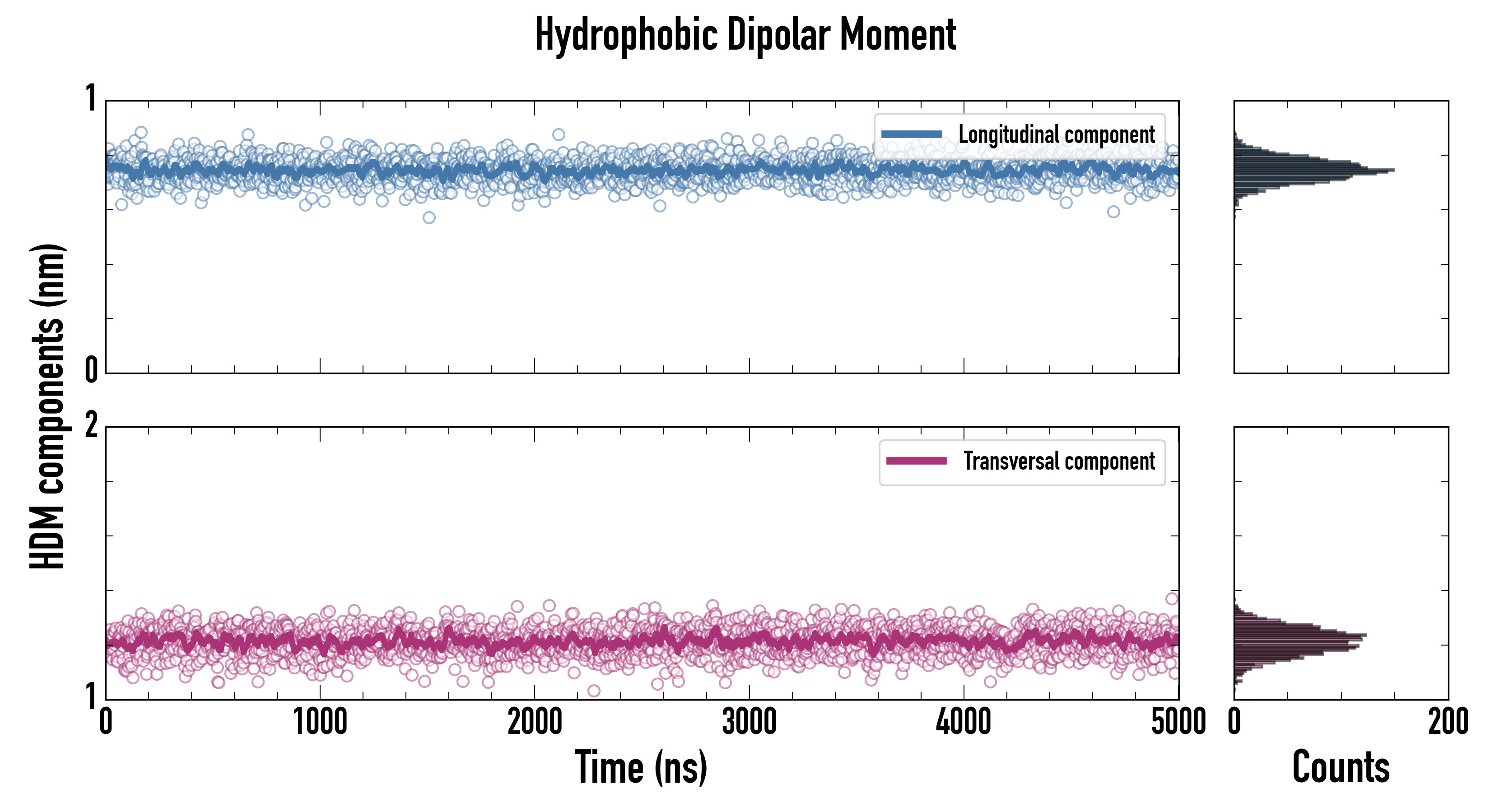 Longitudinal (e nm): 1.54 Transversal (e nm): 0.69 Hydrophobic Dipolar Moment (nm): 1.47