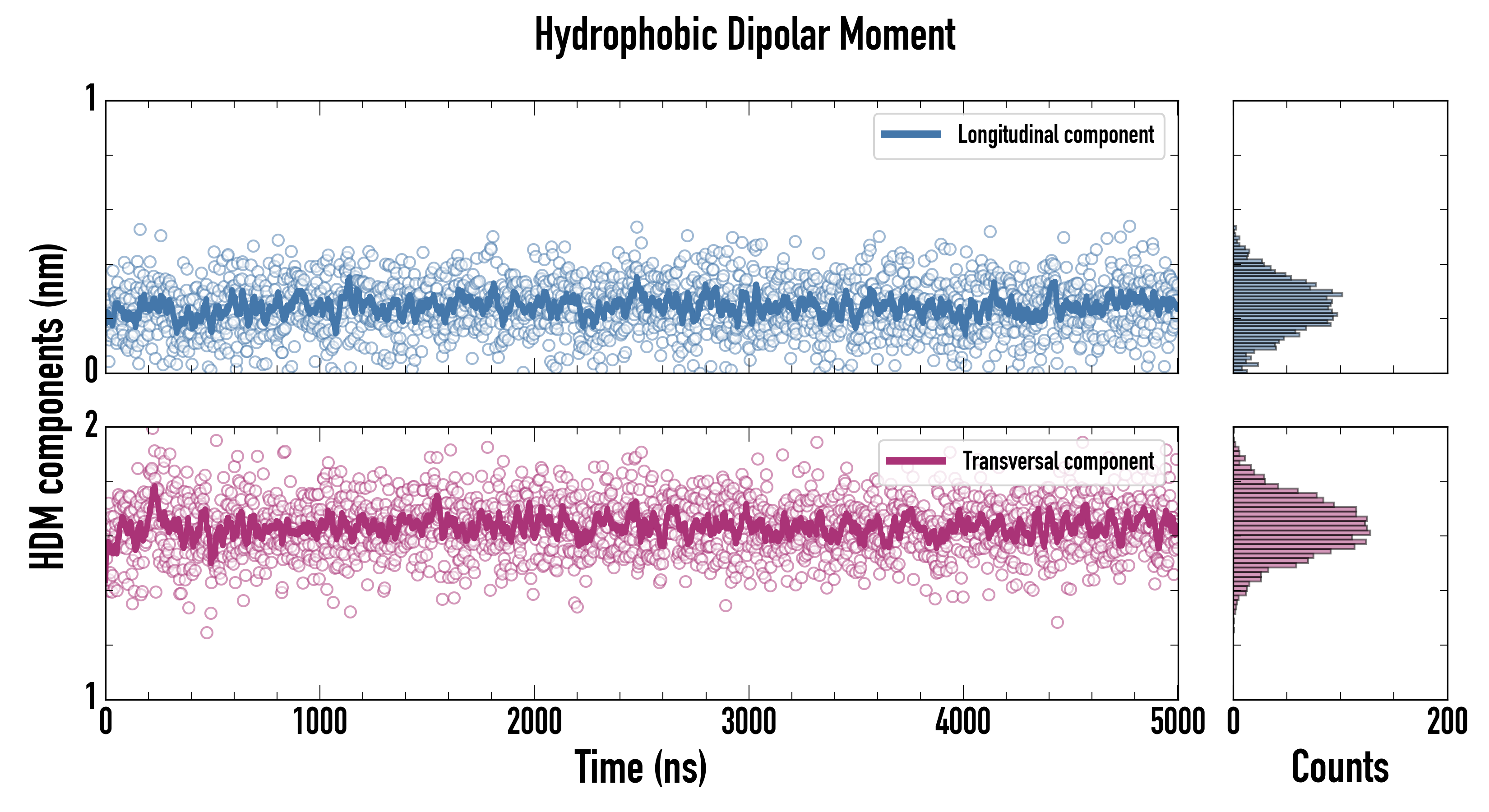 Longitudinal (e nm): 11.45 Transversal (e nm): 2.09 Hydrophobic Dipolar Moment (nm): 1.48