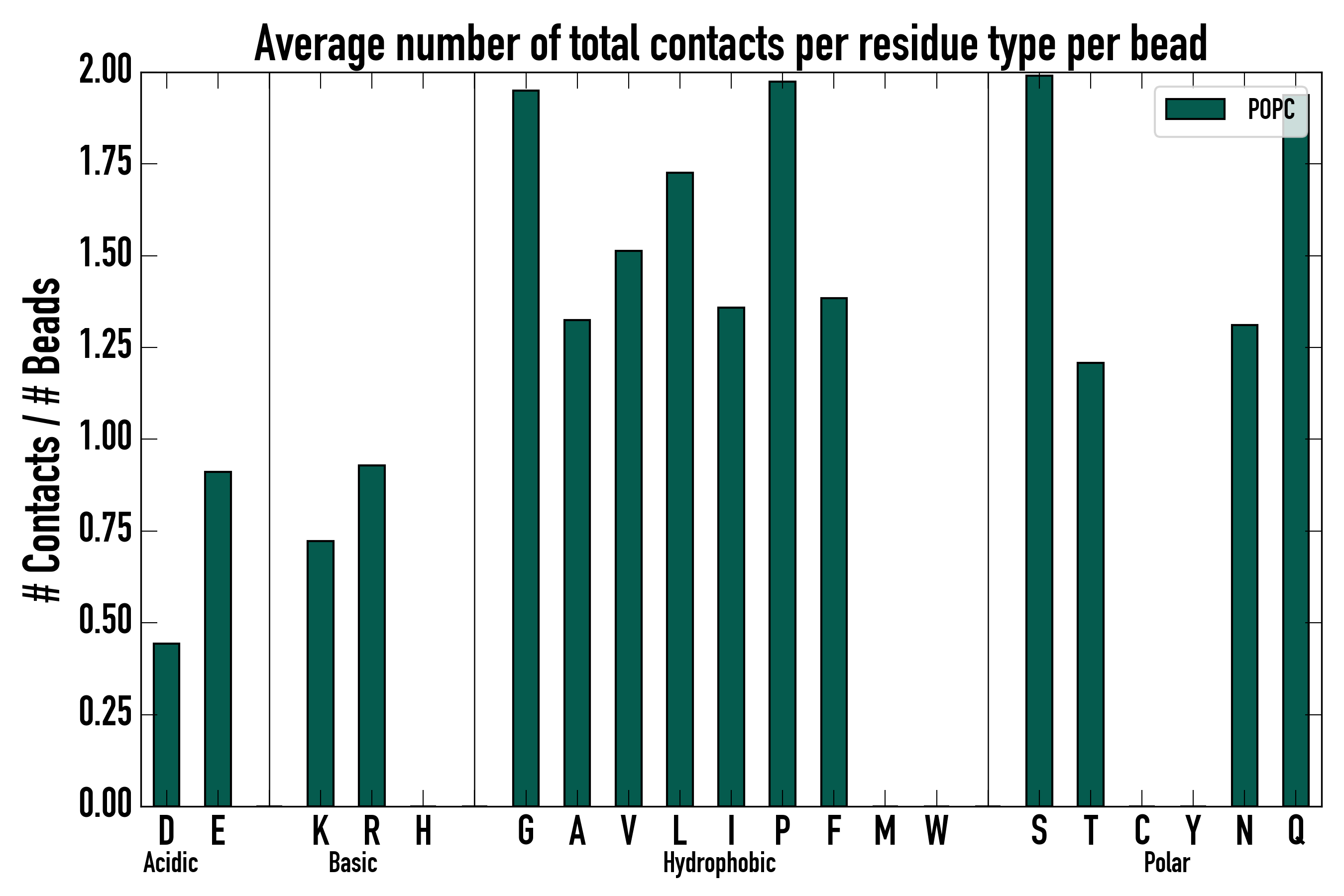 Number of total contacts per residue type: