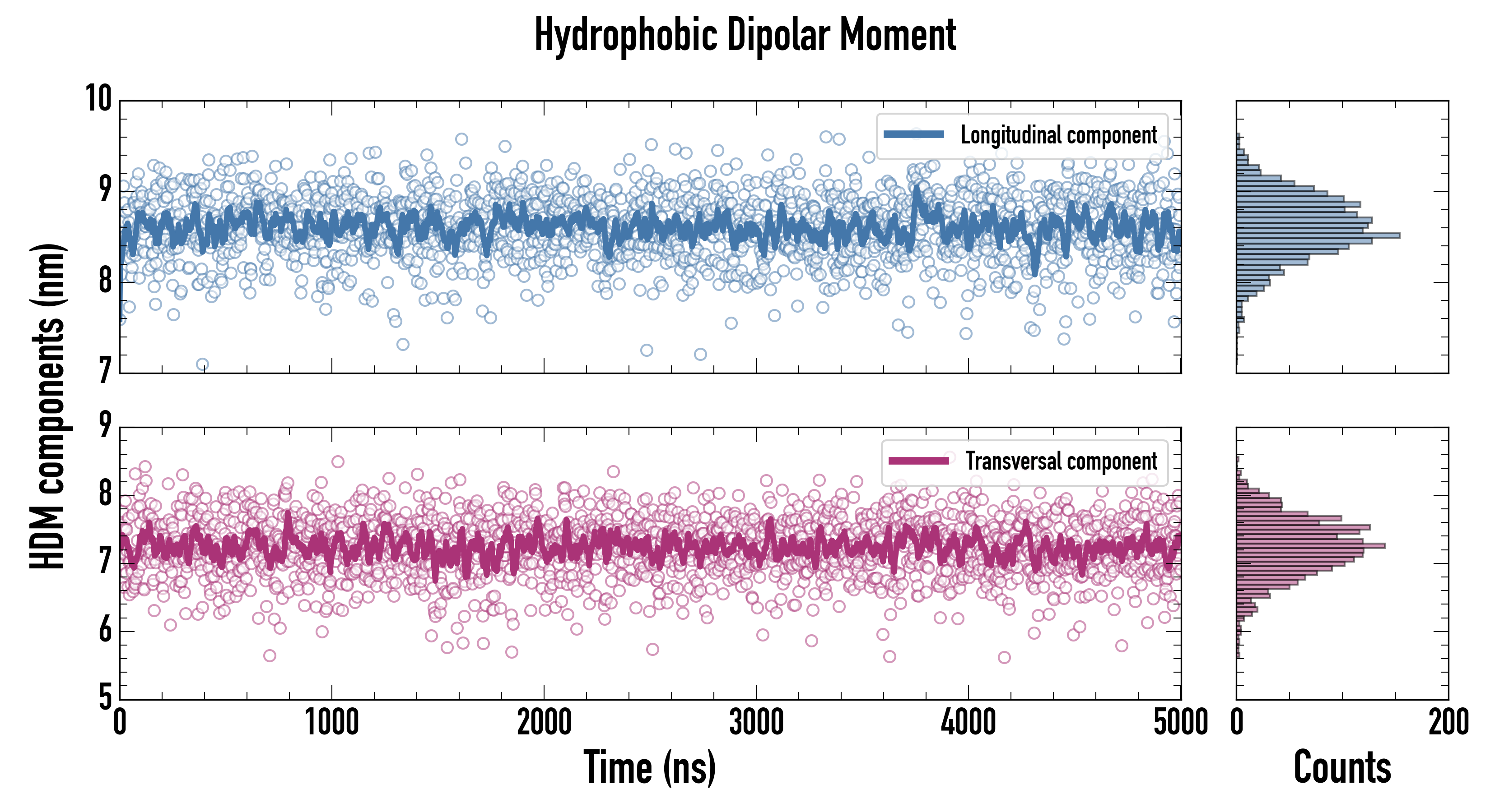 Longitudinal (e nm): 5.96 Transversal (e nm): 1.15 Hydrophobic Dipolar Moment (nm): 10.1