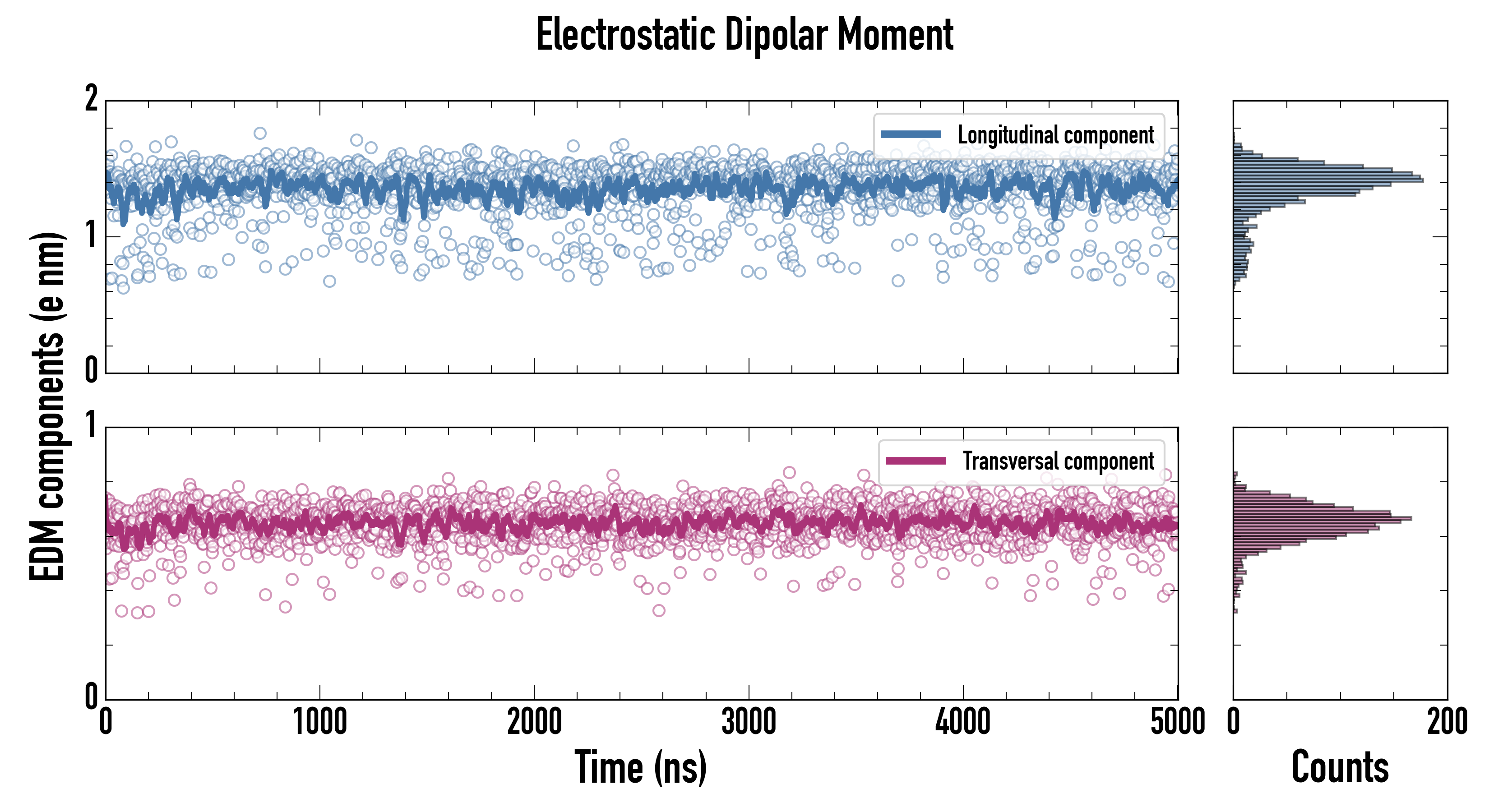 Longitudinal (e nm): 1.49 Transversal (e nm): 0.66 Hydrophobic Dipolar Moment (nm): 1.61