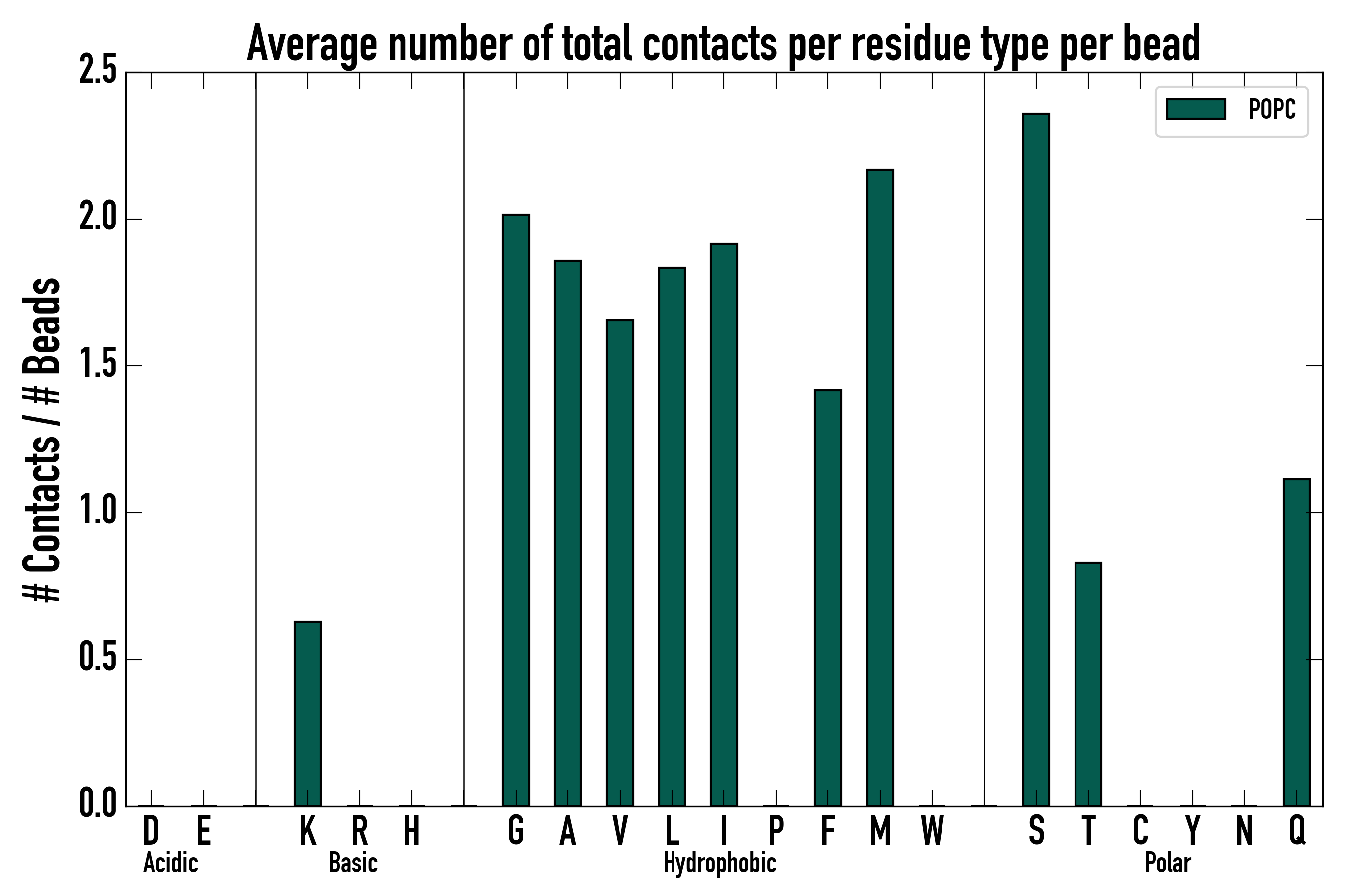 Number of total contacts per residue type: