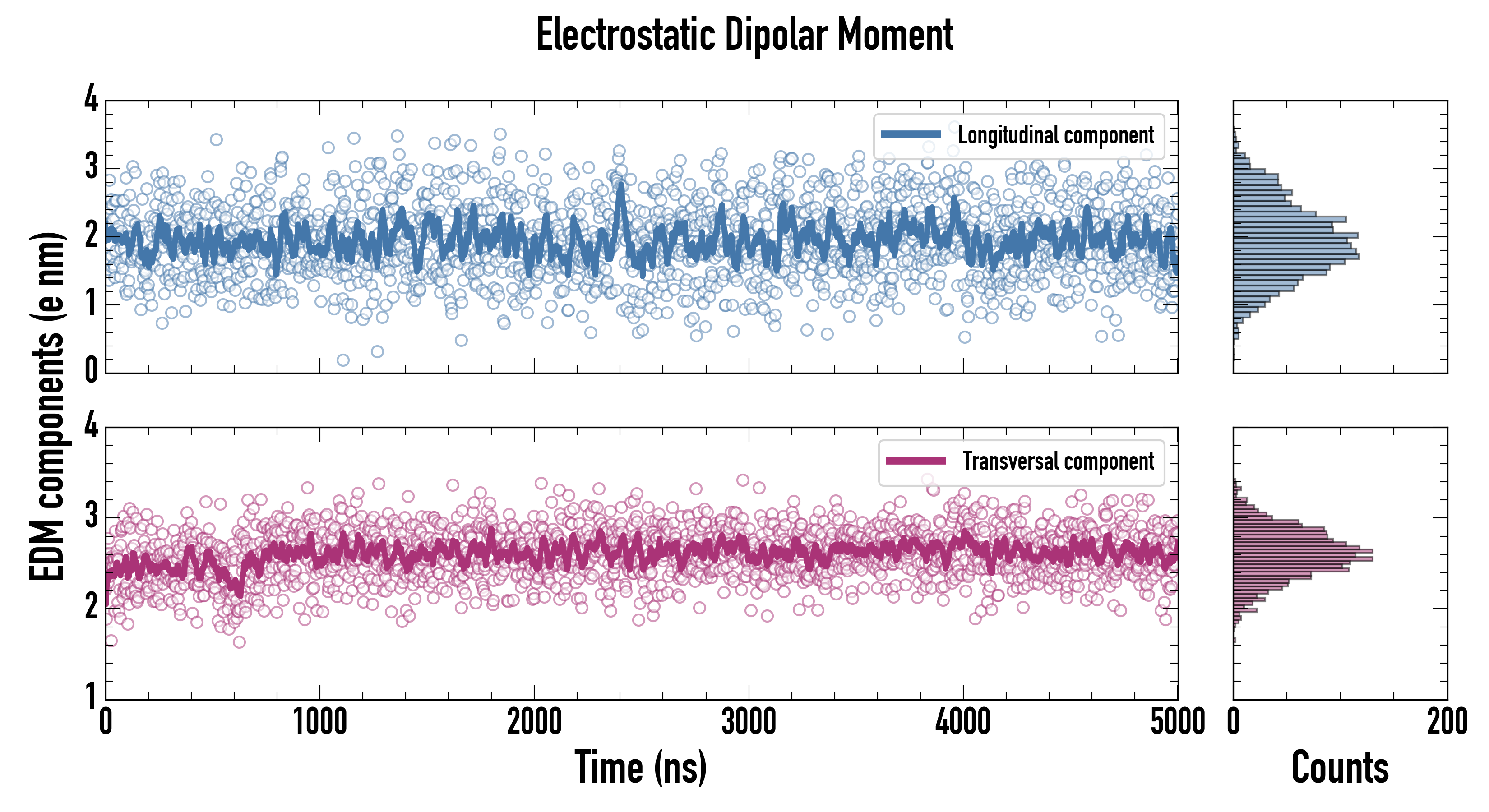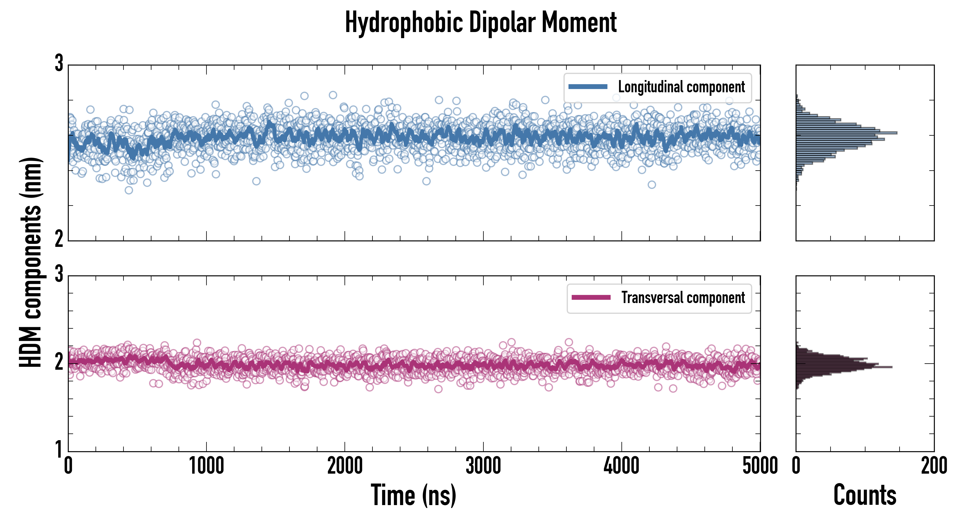 Longitudinal (e nm): 3.85 Transversal (e nm): 2.56 Hydrophobic Dipolar Moment (nm): 3.19