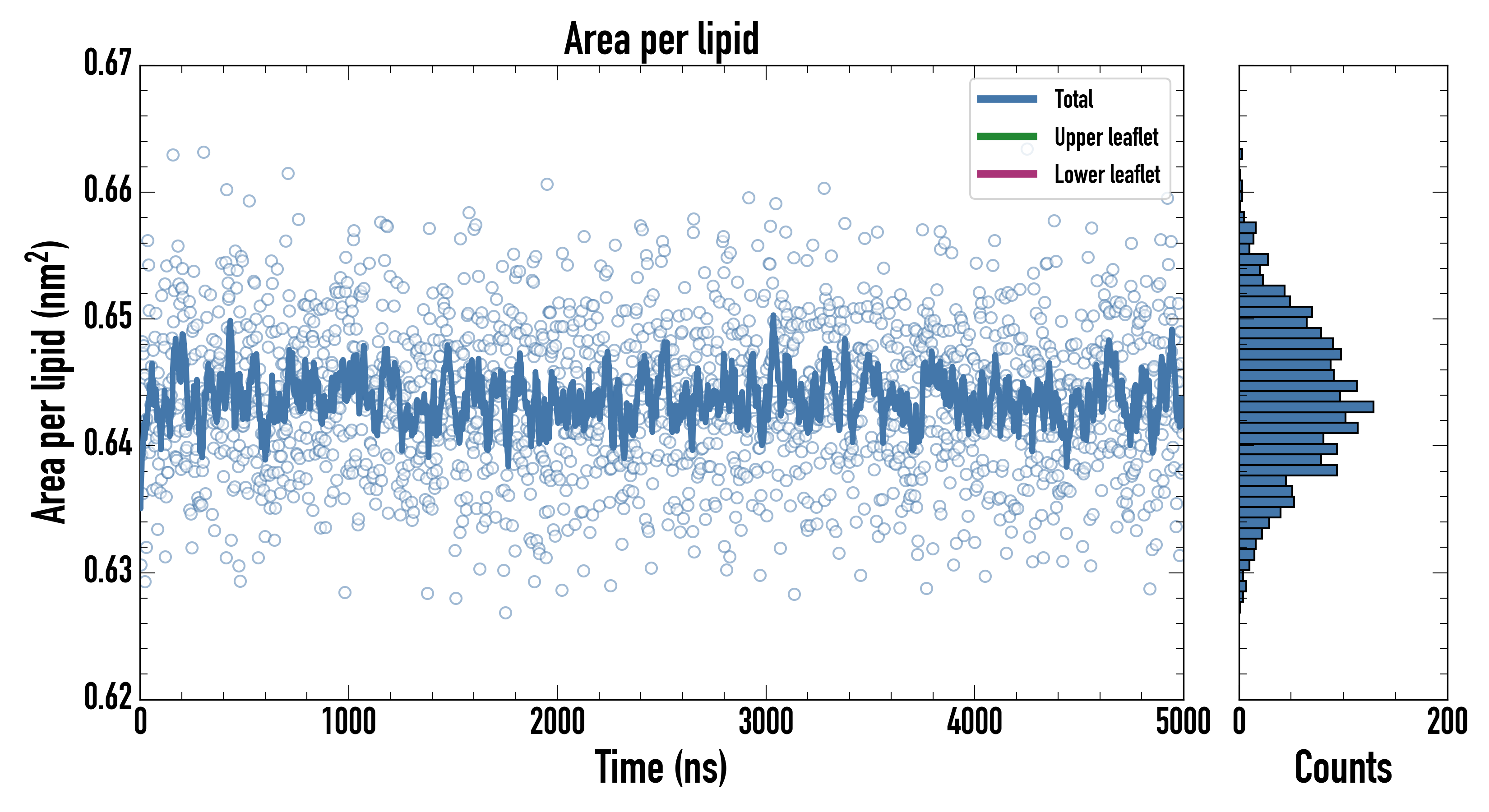 Upper leaflet (nm2): 0.64354800 ± 0.00103196