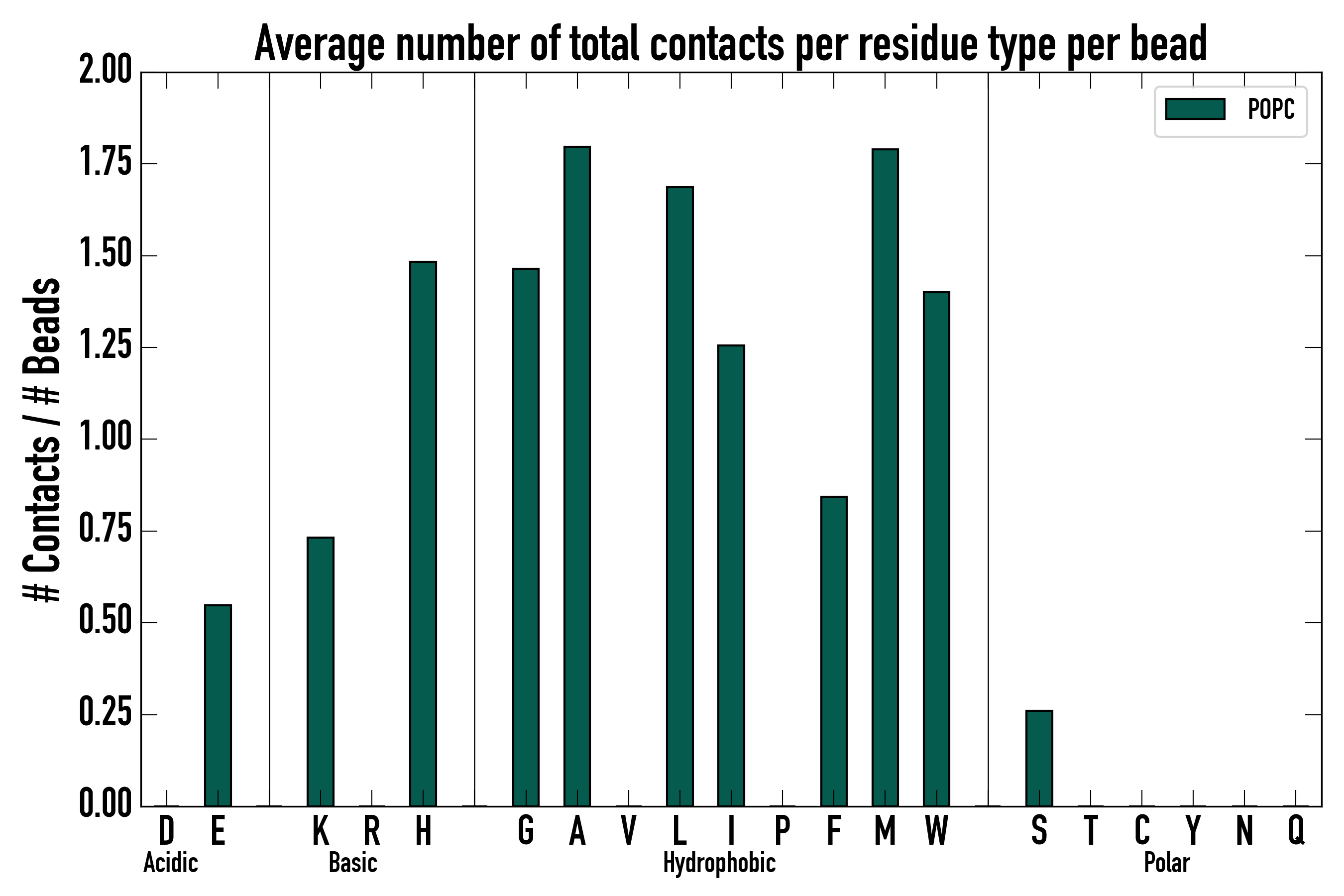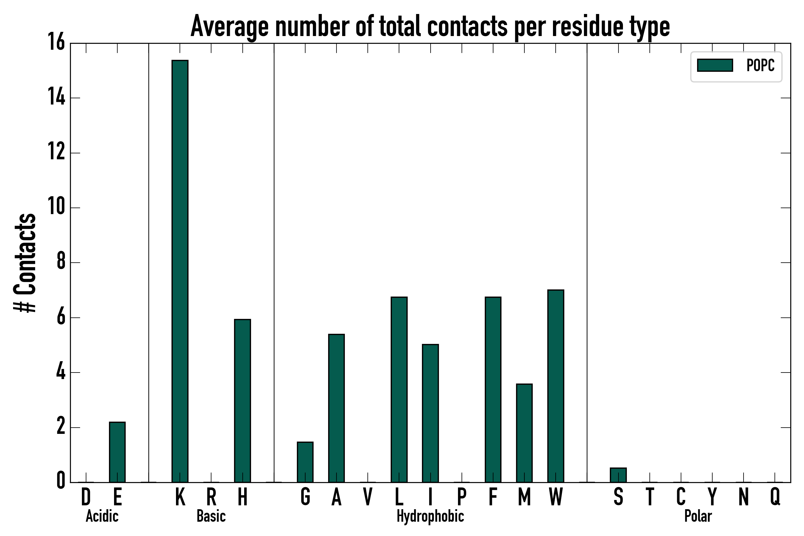 Number of total contacts per residue type: