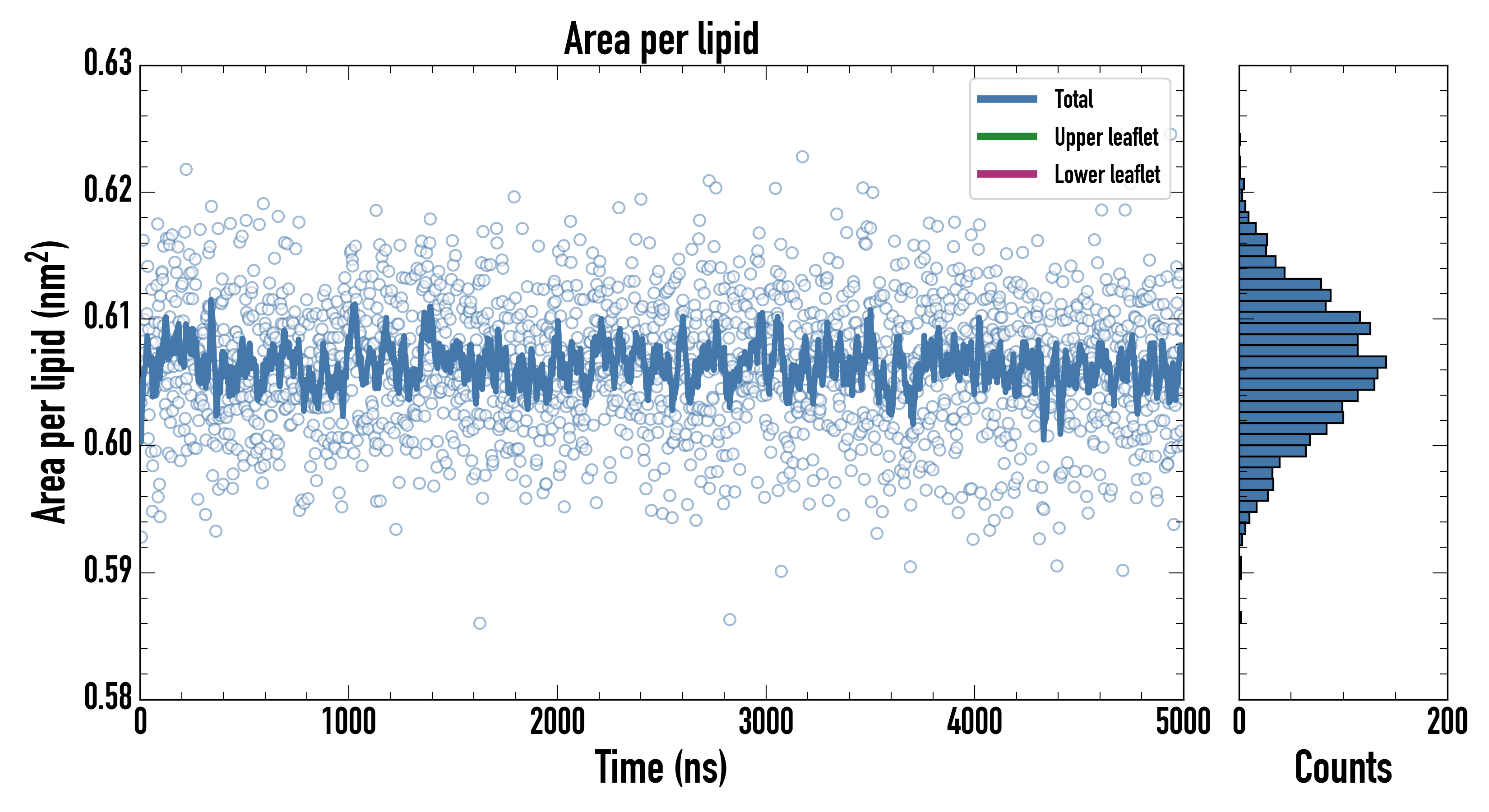 Upper leaflet (nm2): 0.605941000 ± 0.000796721