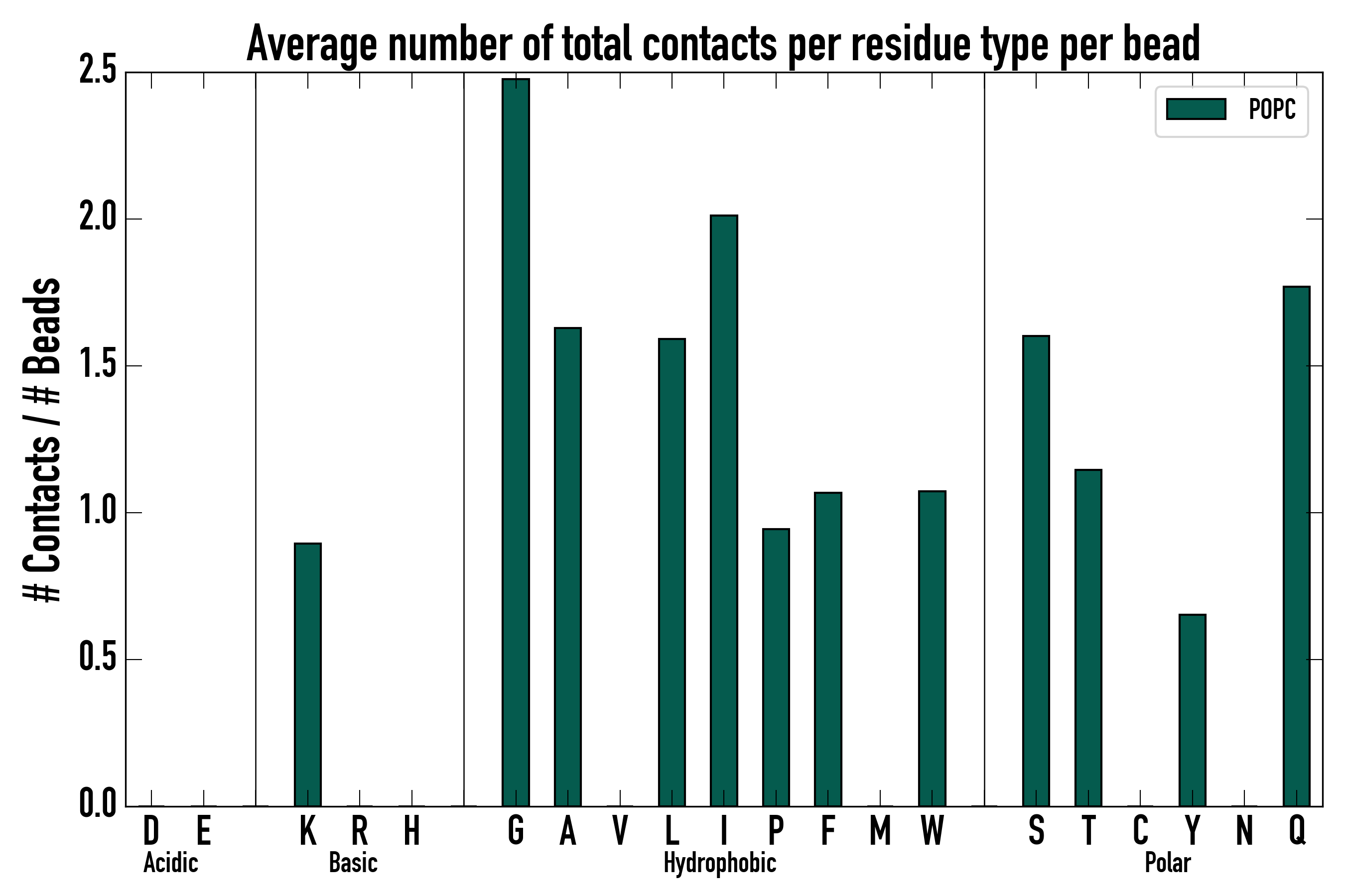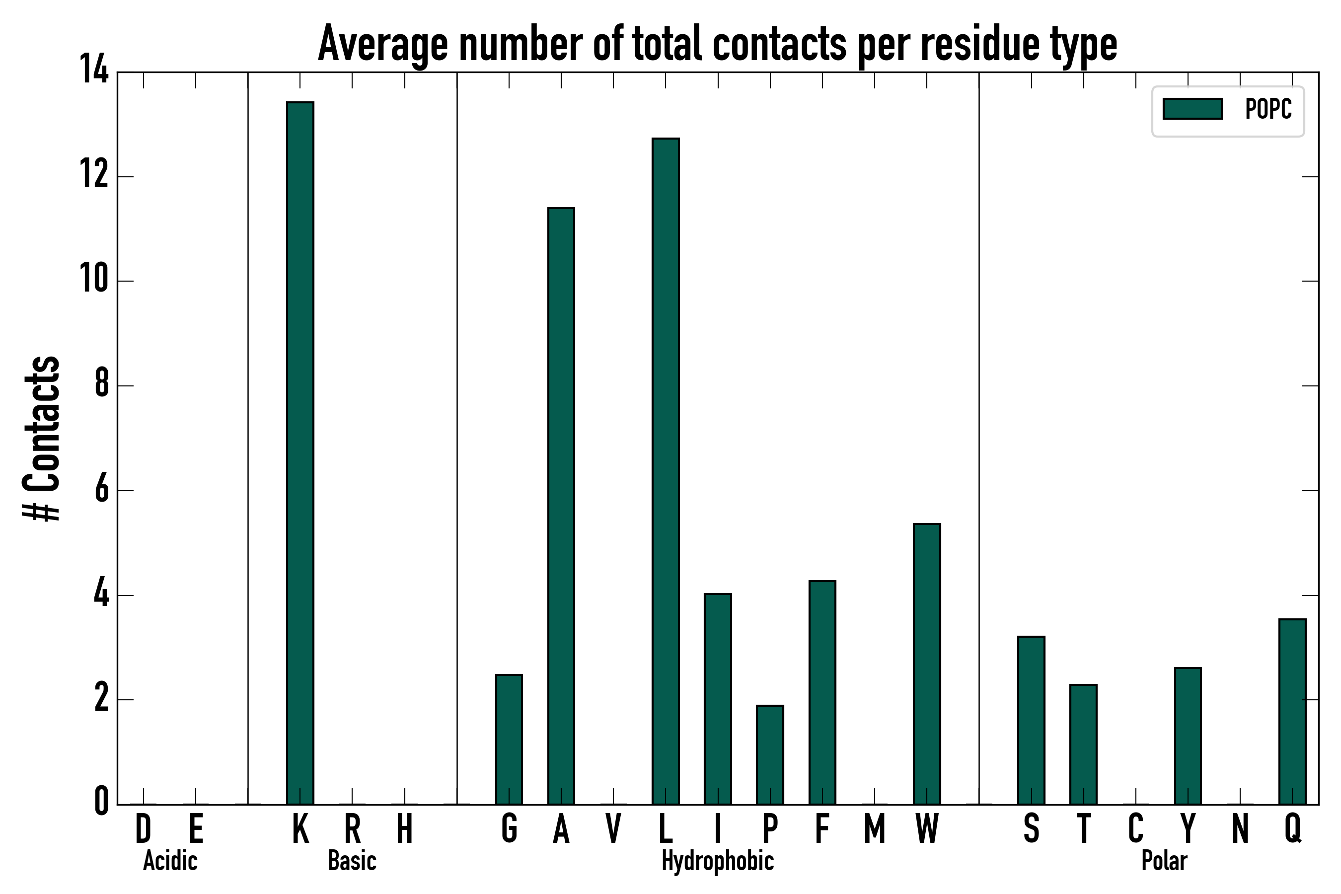 Number of total contacts per residue type: