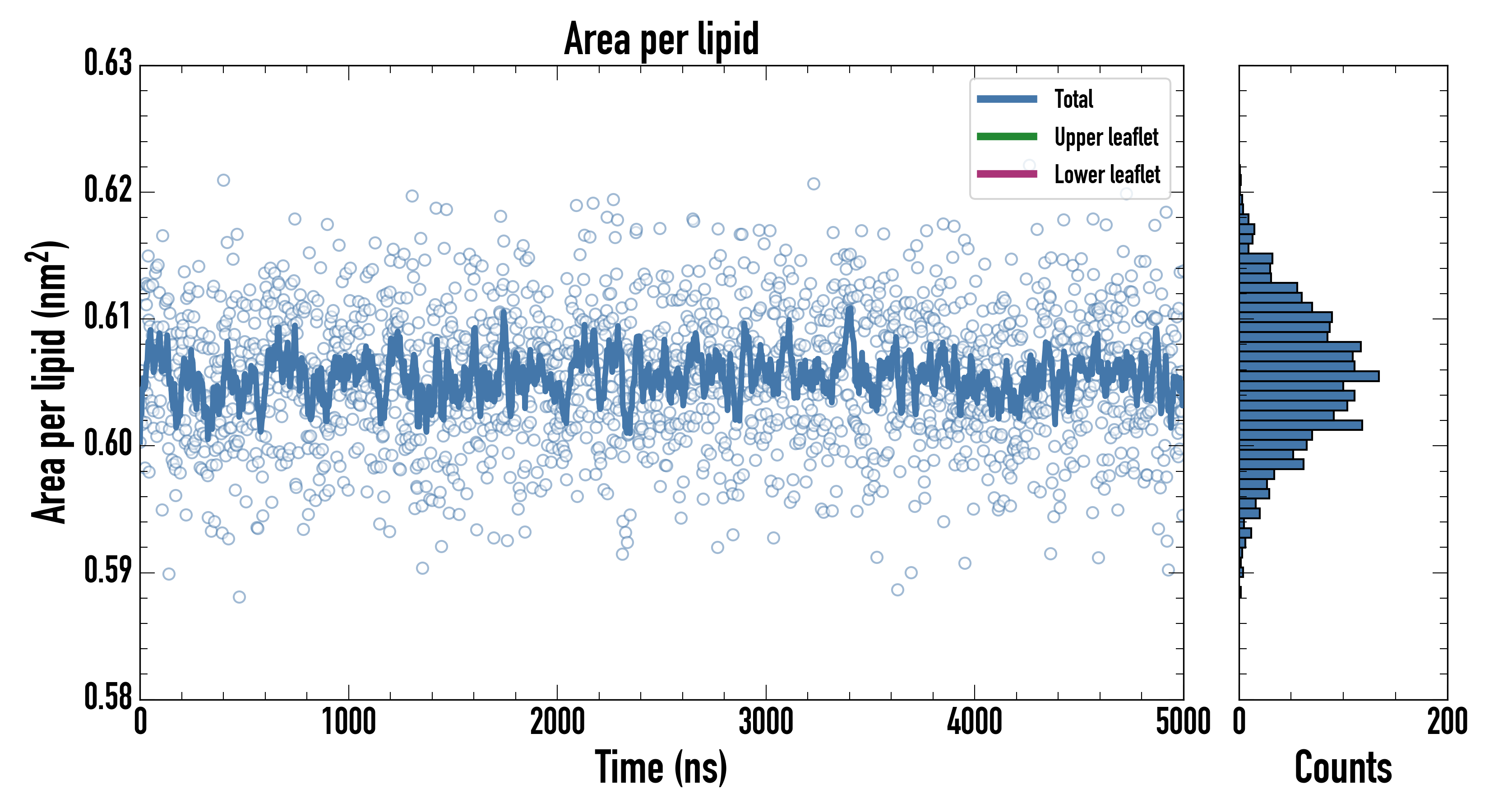 Upper leaflet (nm2): 0.605251000 ± 0.000883115