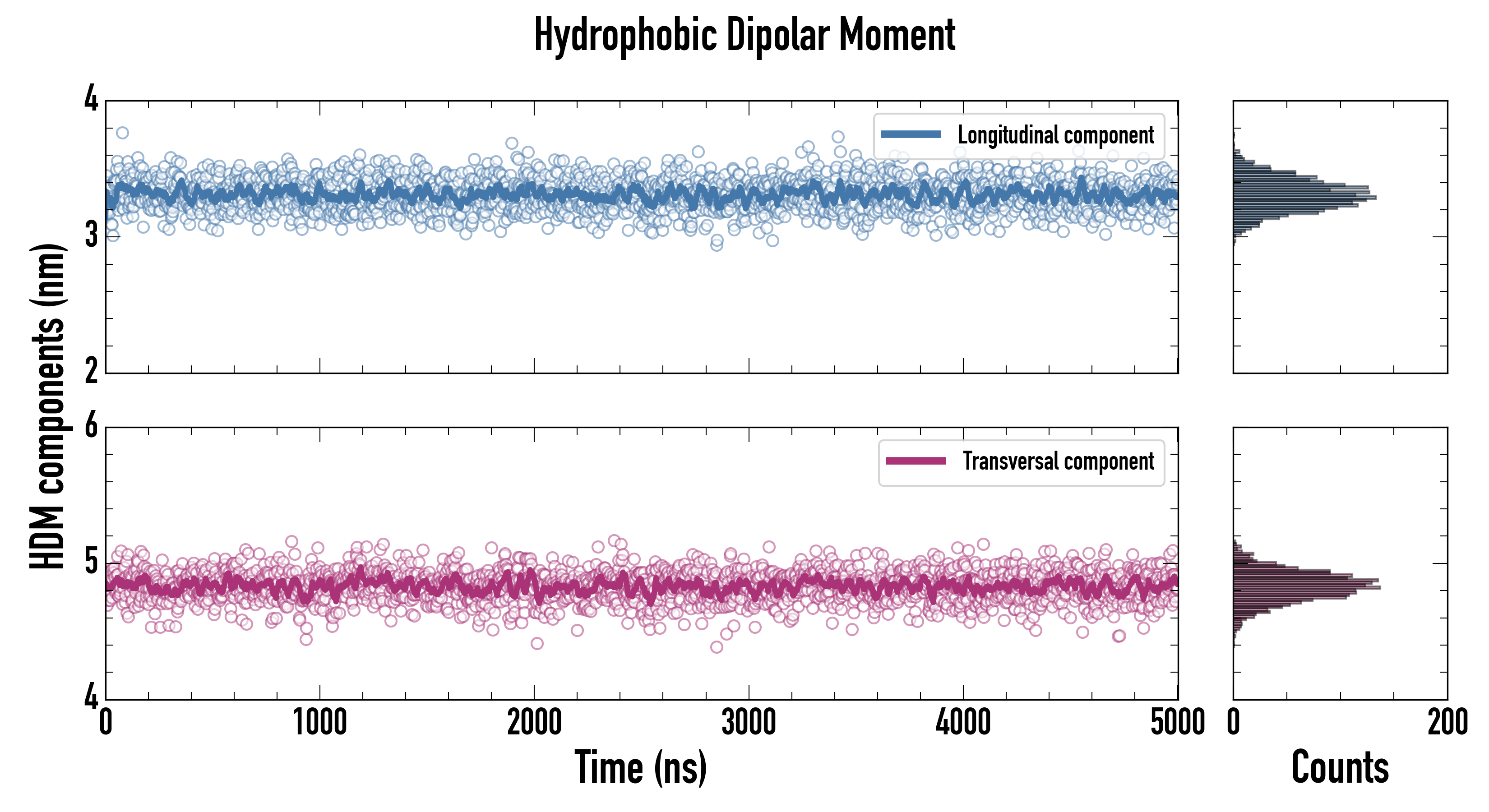 Longitudinal (e nm): 2.31 Transversal (e nm): 0.14 Hydrophobic Dipolar Moment (nm): 5.86