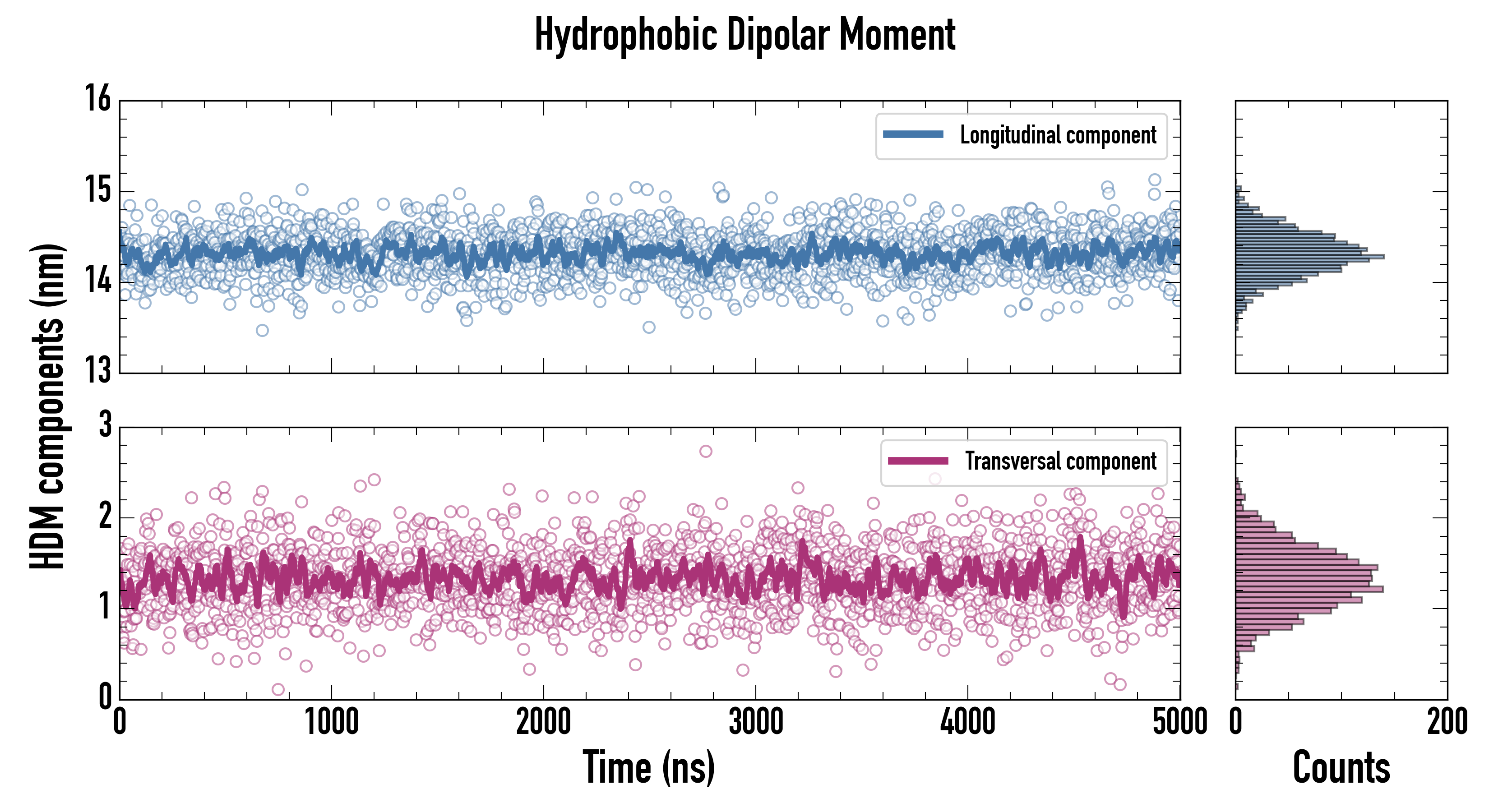 Longitudinal (e nm): 9.02 Transversal (e nm): 0.55 Hydrophobic Dipolar Moment (nm): 14.99
