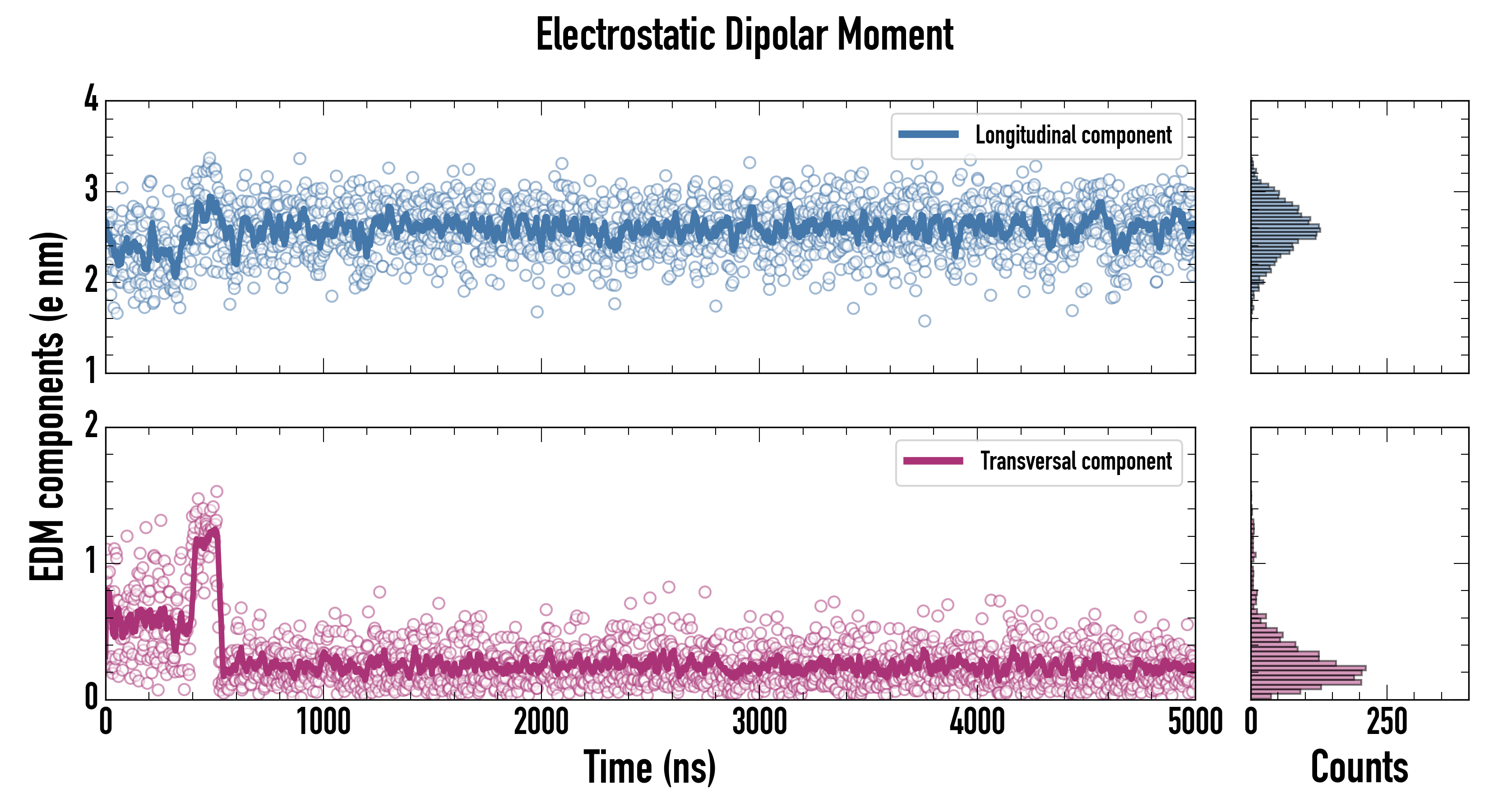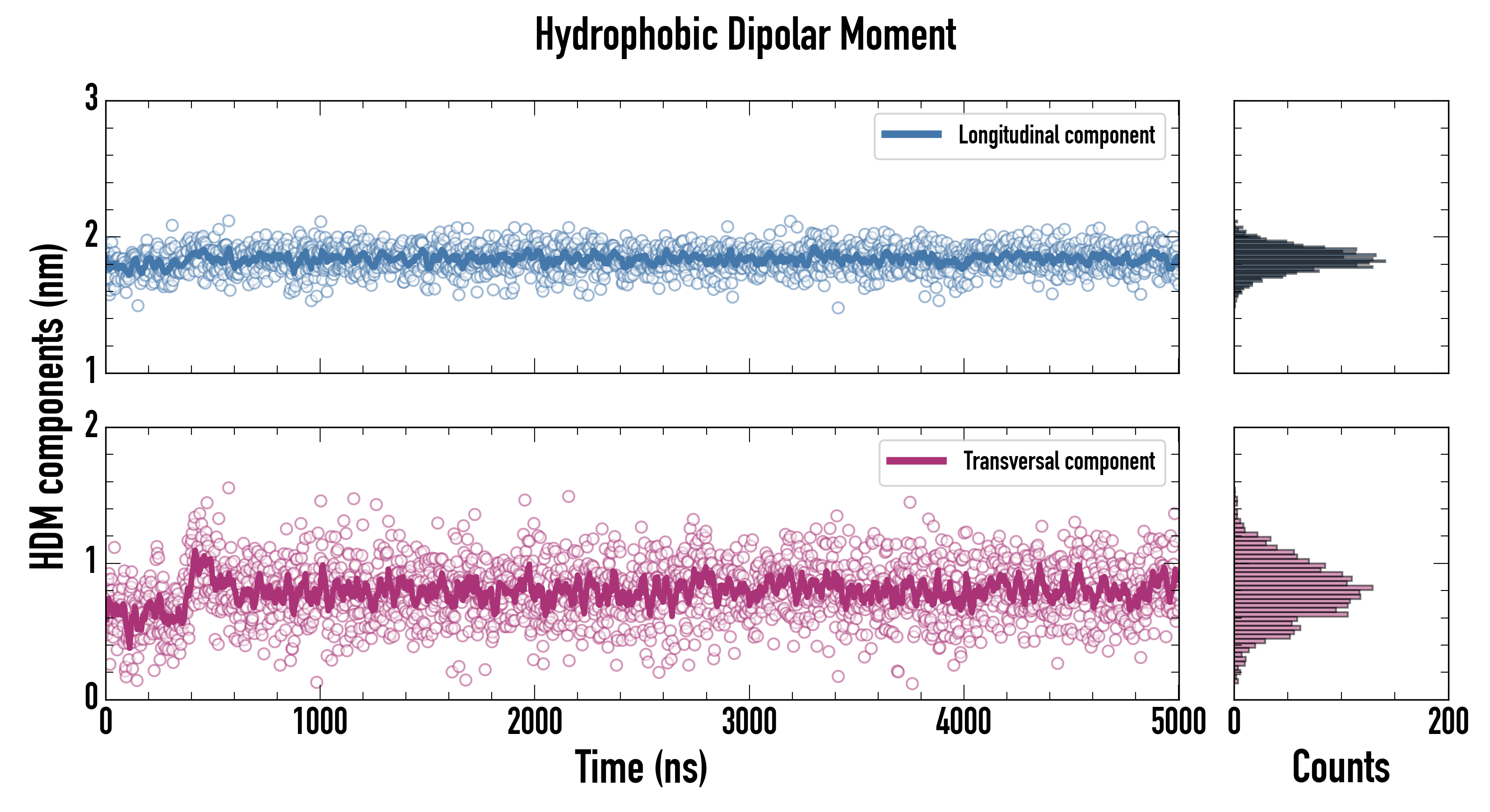 Longitudinal (e nm): 3.05 Transversal (e nm): 0.32 Hydrophobic Dipolar Moment (nm): 2.01