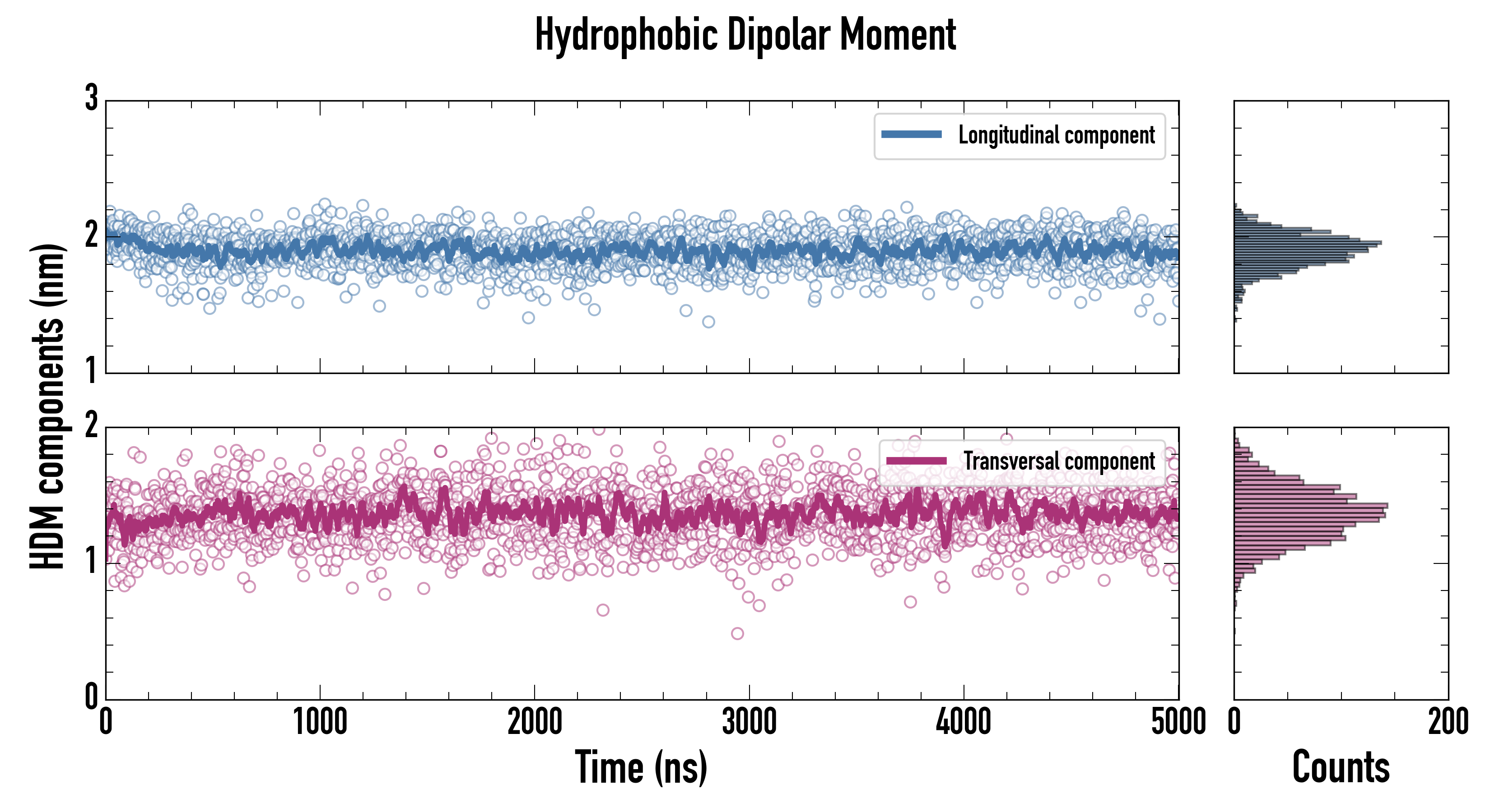 Longitudinal (e nm): 4.35 Transversal (e nm): 1.3 Hydrophobic Dipolar Moment (nm): 1.99