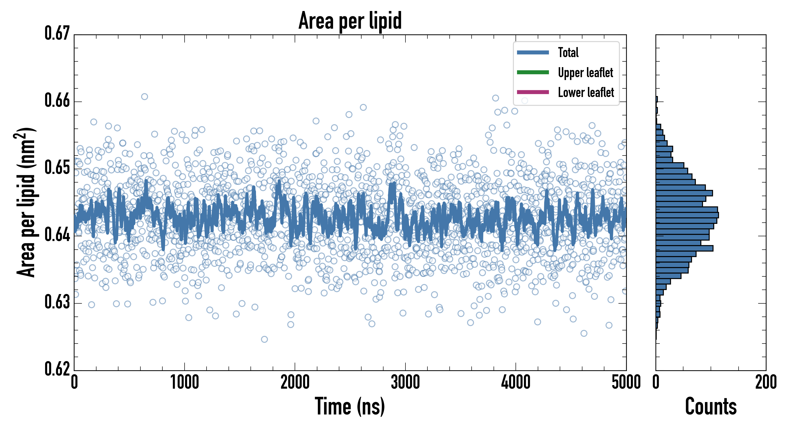 Upper leaflet (nm2): 0.642562000 ± 0.000923003
