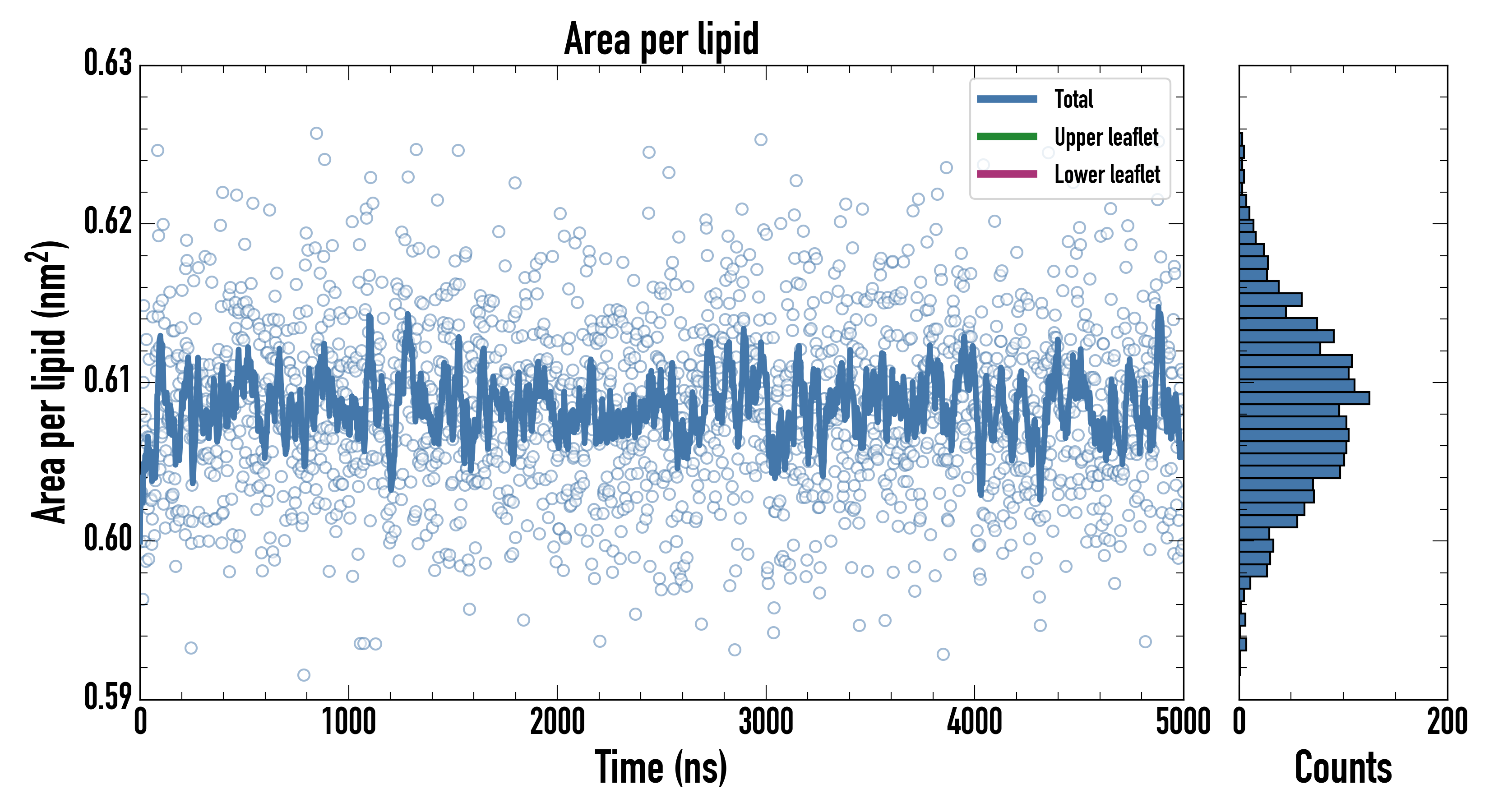 Upper leaflet (nm2): 0.608100000 ± 0.000958021
