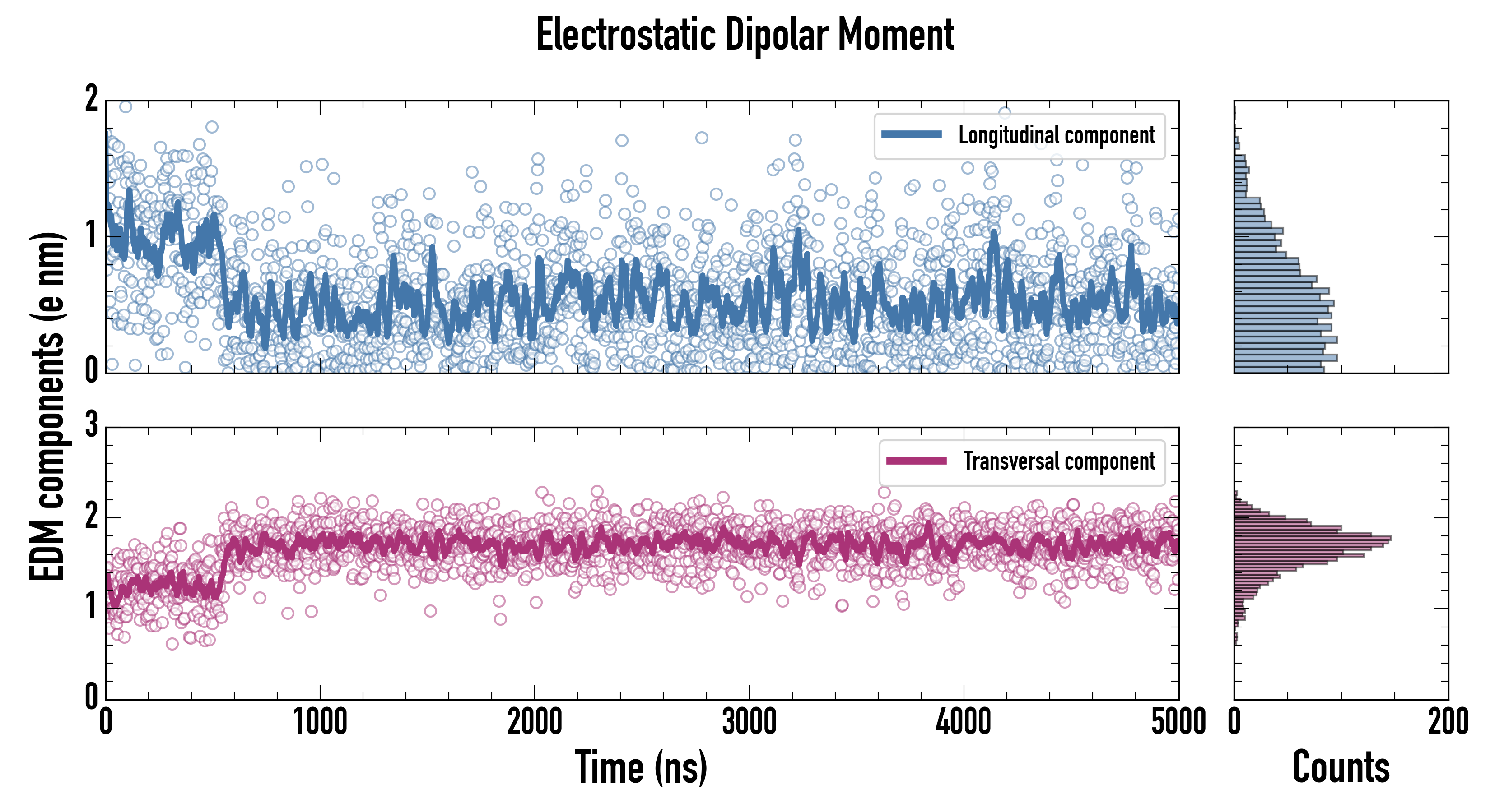 Longitudinal (e nm): 1.78 Transversal (e nm): 1.08 Hydrophobic Dipolar Moment (nm): 4.67