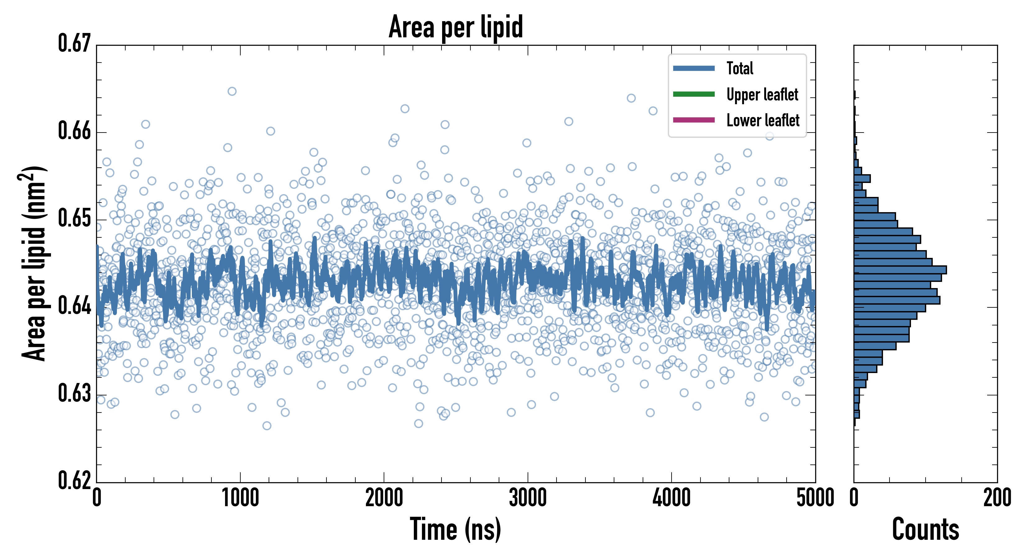 Upper leaflet (nm2): 0.642609000 ± 0.000982613