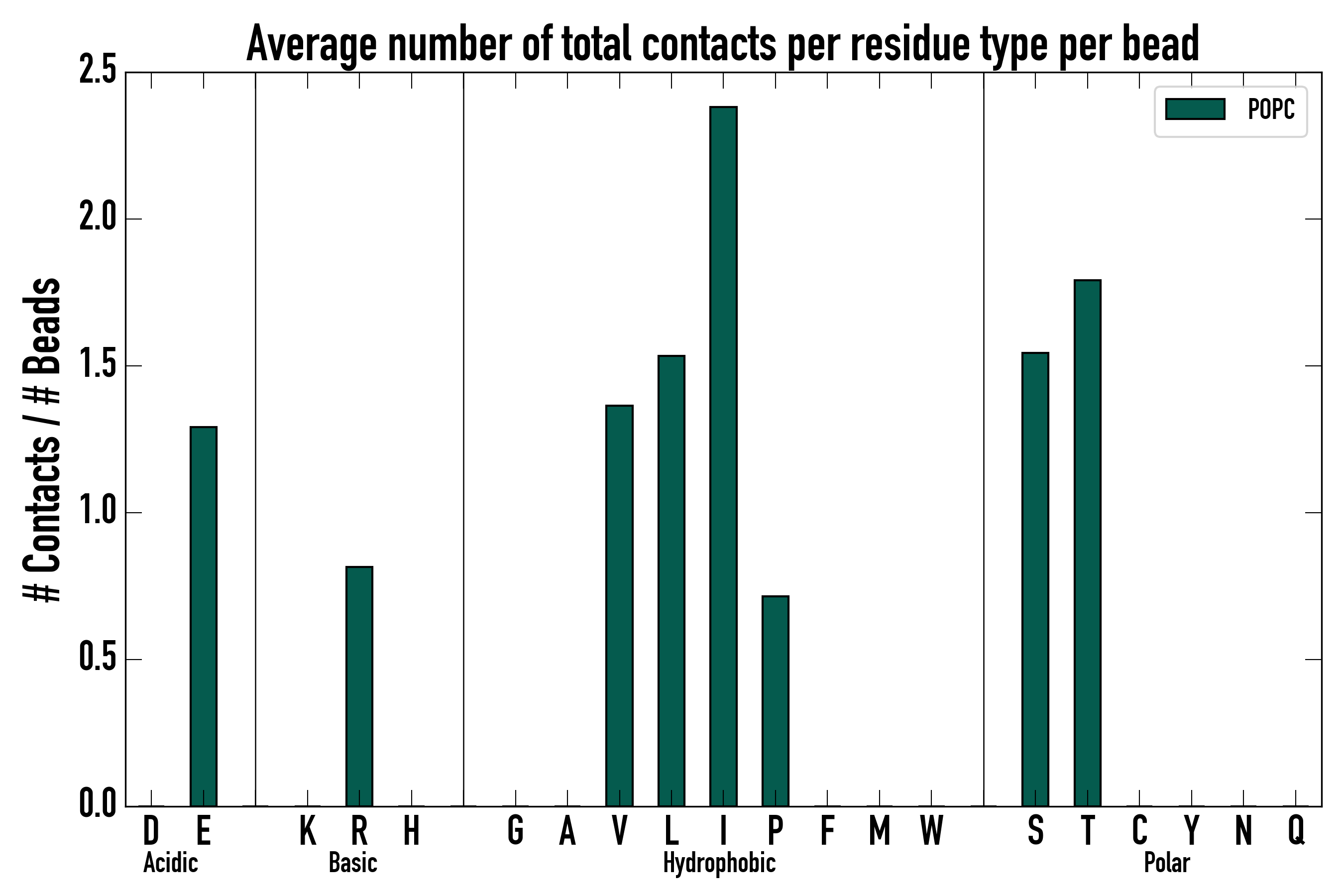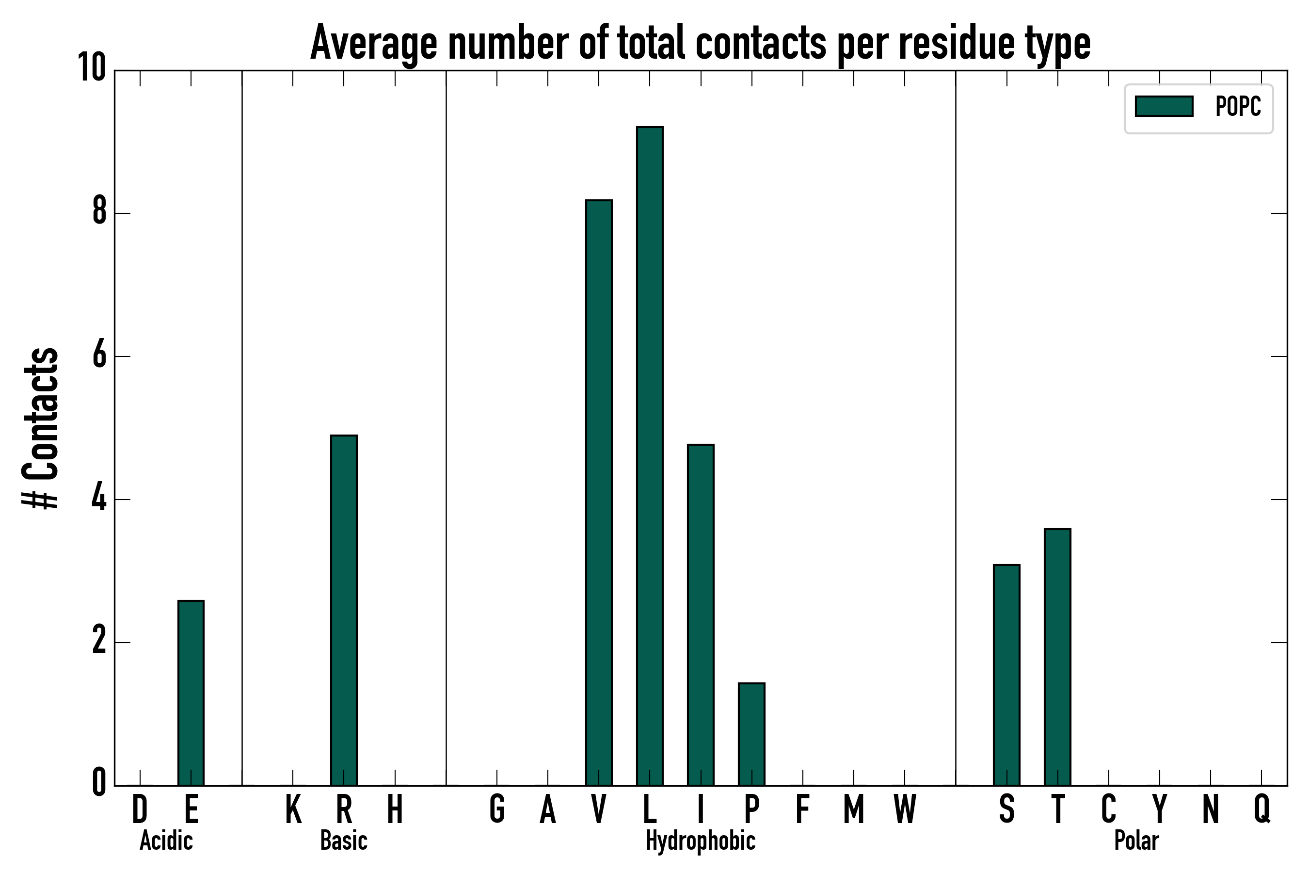 Number of total contacts per residue type: