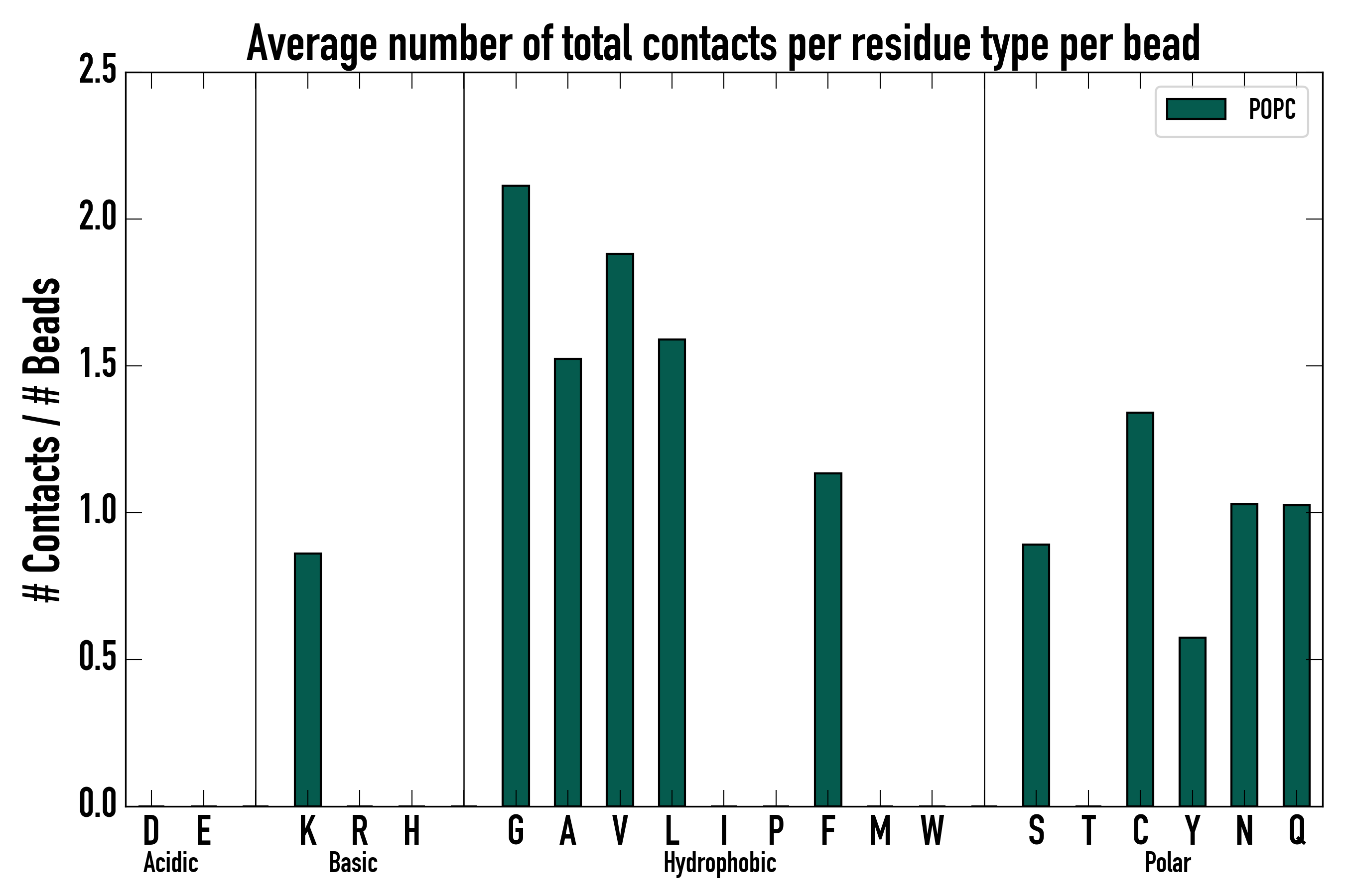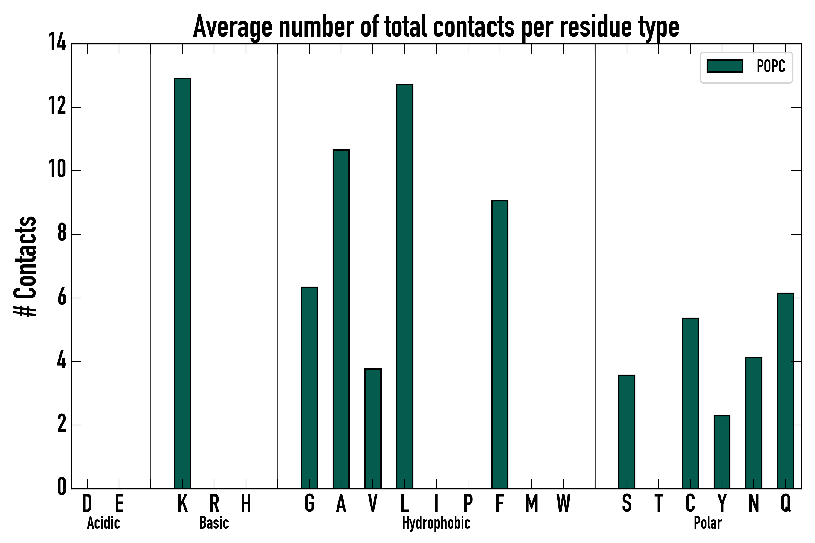 Number of total contacts per residue type: